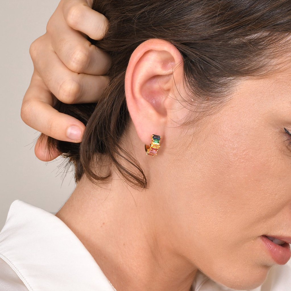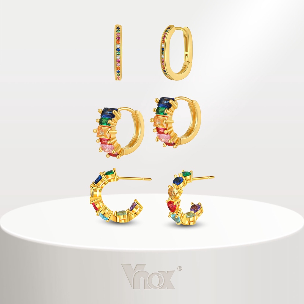 Vnox Colorido Zircônio Cúbico Brinco De Tarraxa Para Mulheres Menina , Ouro 18K Hipoalergênico Pendente , Festa Joia De Natal