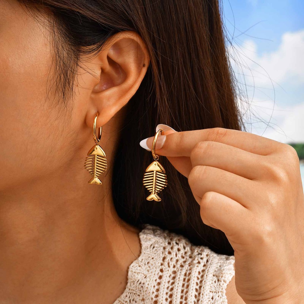 Vnox Criativo Metal Osso De Peixe Acessórios Pingente Brincos De Argola Aço Inoxidável À Prova Dwaterproof Água Festa De