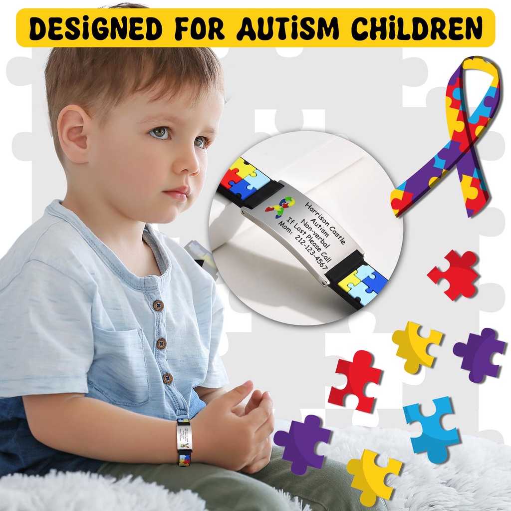 VNOX Cuastom Engrave Pulseira Infantil Autismo Puzzle Colorida - Nome Personalizado Em Aço Inoxidável Para Crianças