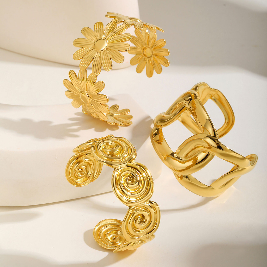 Vnox Daisy Opening Pulseira Para Mulheres Aço Inoxidável Punho Largo Grande Joias Resistentes À Água