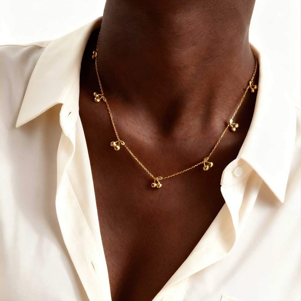 Vnox Feminino Ouro Cereja Borboleta Arco Link Corrente Colar Requintado Hipoalergênico E Não Desbotamento Jóias Presente