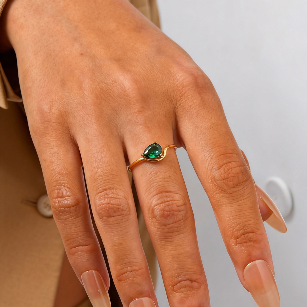 Vnox Luxo Gota De Água Em Forma De Zircônia Cúbica Anel Feminino De Aço Inoxidável Banhado A Ouro 18K Joias À Prova D'ág