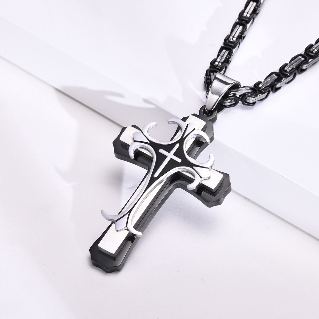 VNOX Marca Dos Homens De Aço Inoxidável Dupla Camada Pingente De Cruz Preto Colar De Presente Da Jóia