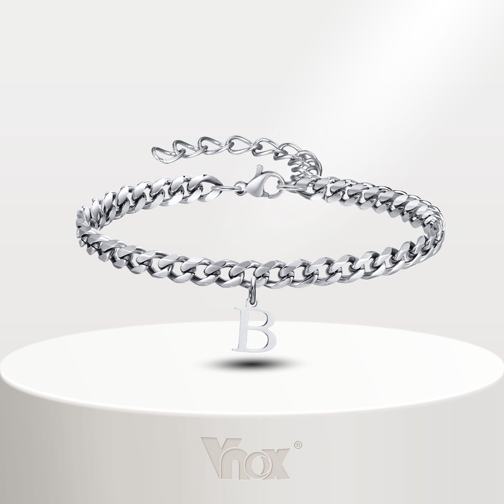 Vnox Non Fading Silver Pulseira De Aço Inoxidável Corrente Cubana Para Homens , 26 Letras A-Z Pingente Artesanal Adequado Jóias Femininas .