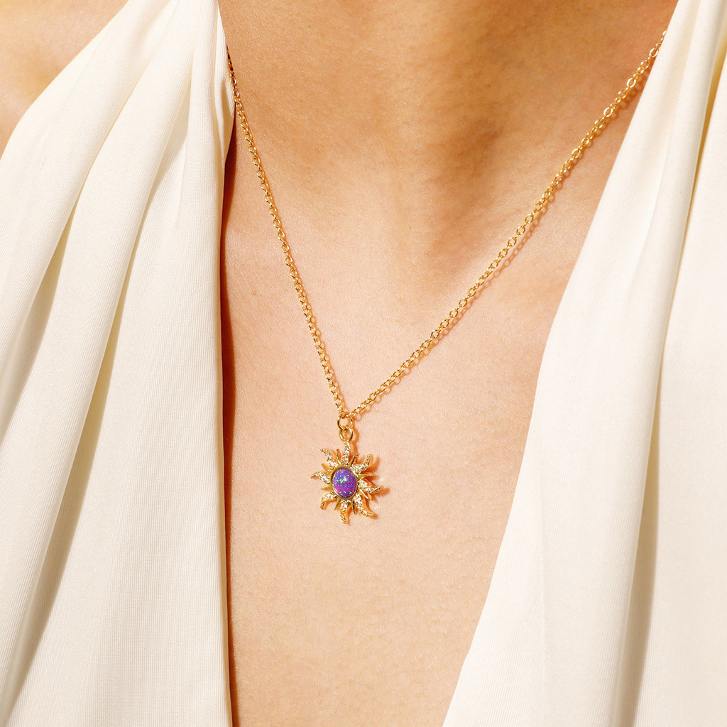 Vnox Opal Zircon Colar De Girassol Cúbico Em Zircônio Pulseira Para Menina Feminina , 18K Gold Purple Retro Elo De Corrente De Aço Inoxidável