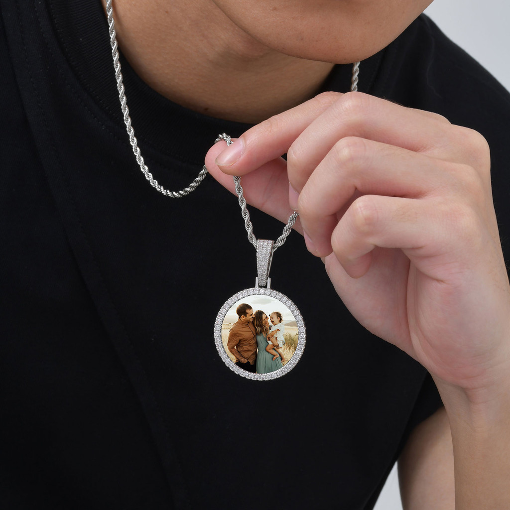 Vnox Personalizado CZ Memorial Molduras Colar Foto Personalizada Círculo Medalhões Pingente , Hip Hop Festa Aniversário