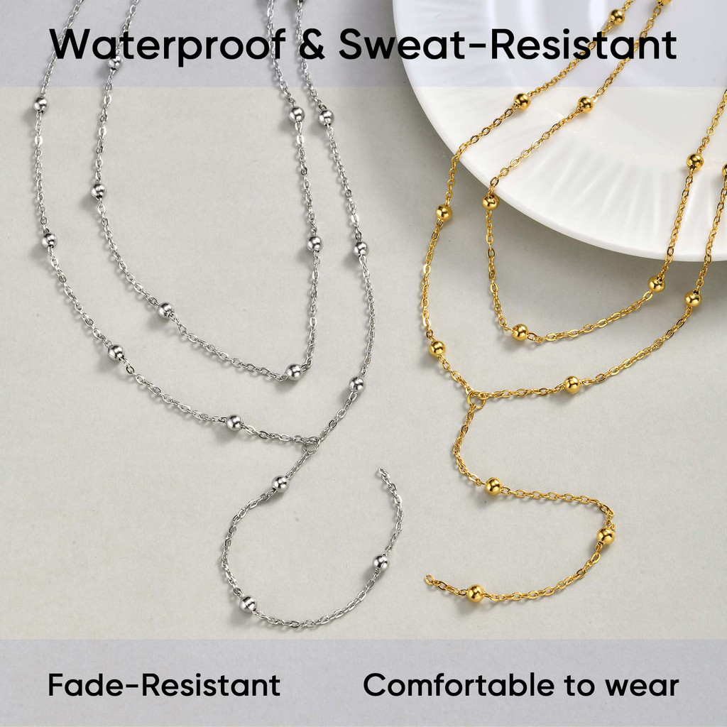 Vnox Prata Frisado Borla Dupla Camada Empilhada Em Forma De Y Colar Ajustável Não Manchar Longo Feminino Simples Moda An