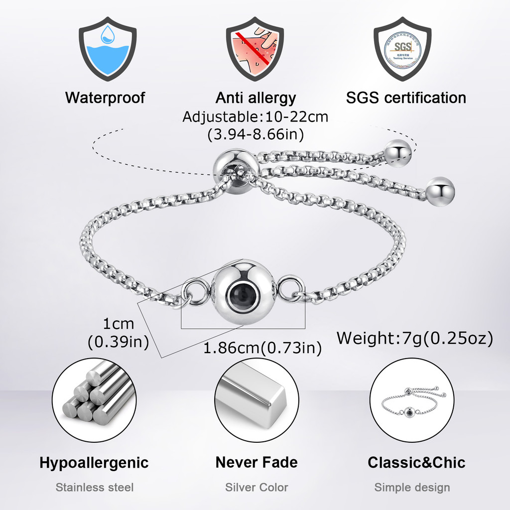 Vnox Pulseira Com Foto Personalizada Para Casais , Amigos , Presente Criativo , À Prova De Ferrugem , Ajustável