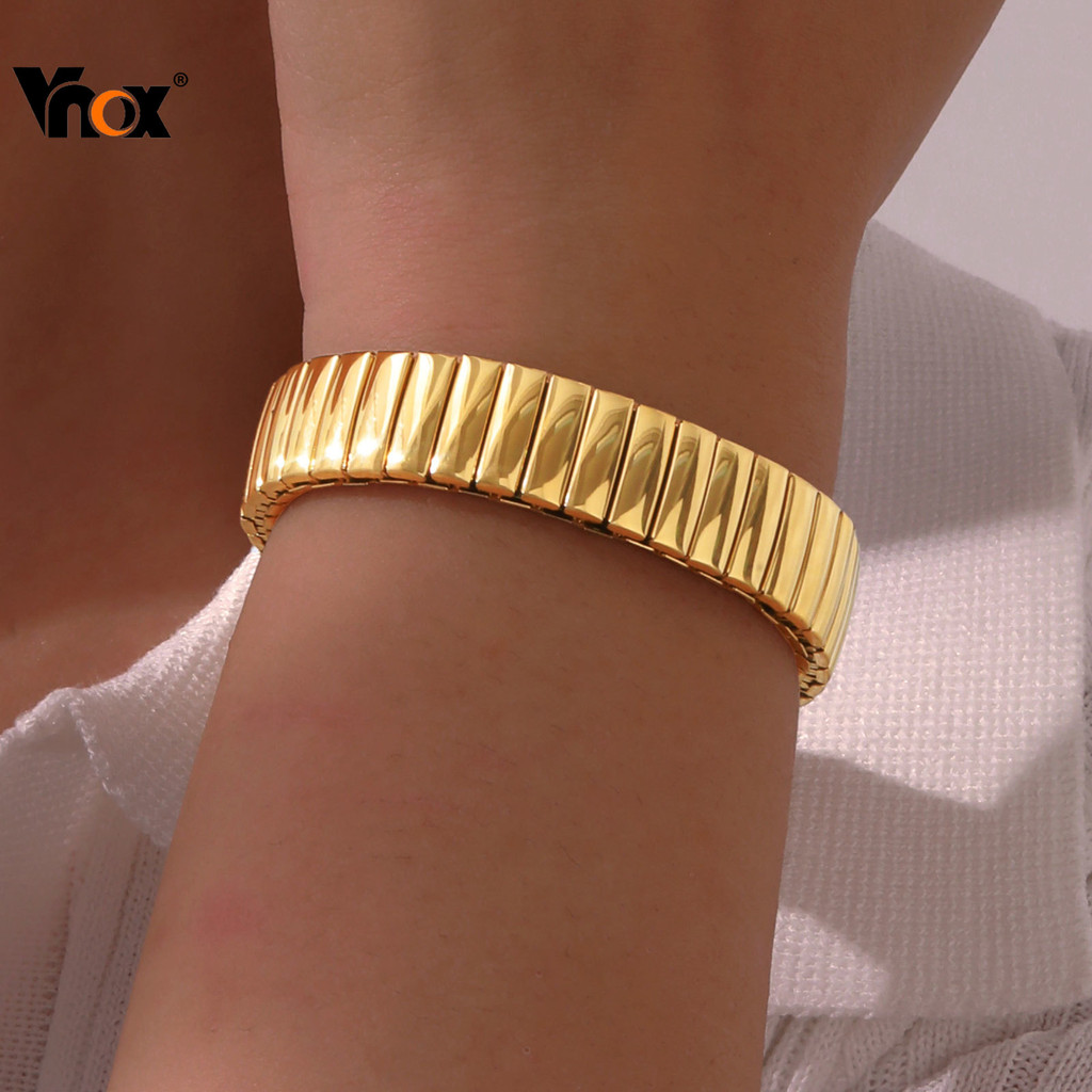 Vnox Pulseira Elástica De Aço Inoxidável Para Mulher 18k Ouro Moda Ajustável Jóias Da