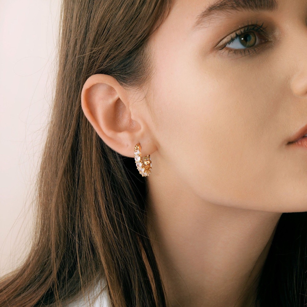 Vnox Round Zircon Cubic Hoop Brincos Para Menina Feminina , Ouro 18K Hipoalergênico Casar Festa Jóias Presente