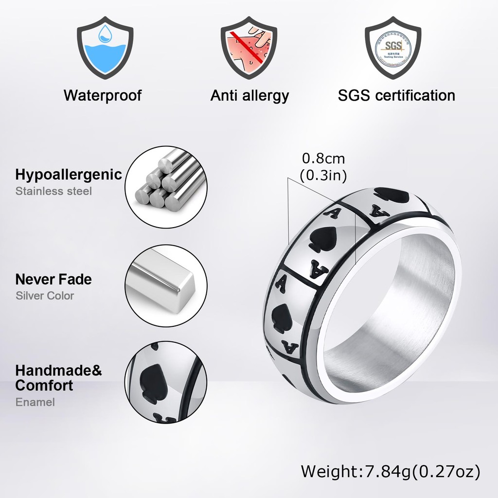 Vnox Silver Spade Um Anel Banda De Personalidade Moderna Ace of Spades Design Hip-Hop Punk Party Jewelry