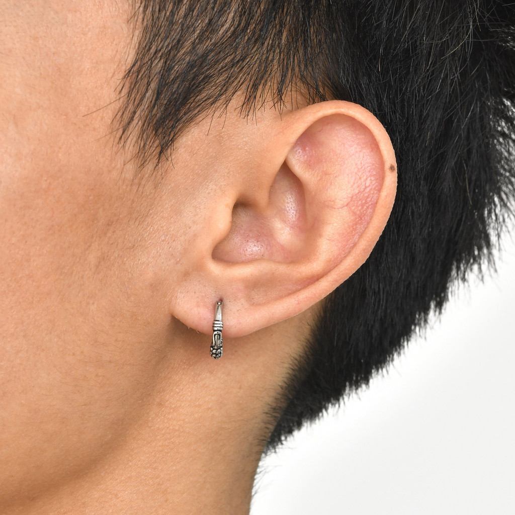 Vnox Vintage Padrão Geométrico Brincos Masculinos , Prata De Aço Inoxidável Antialérgica De Anel Jóias Presente