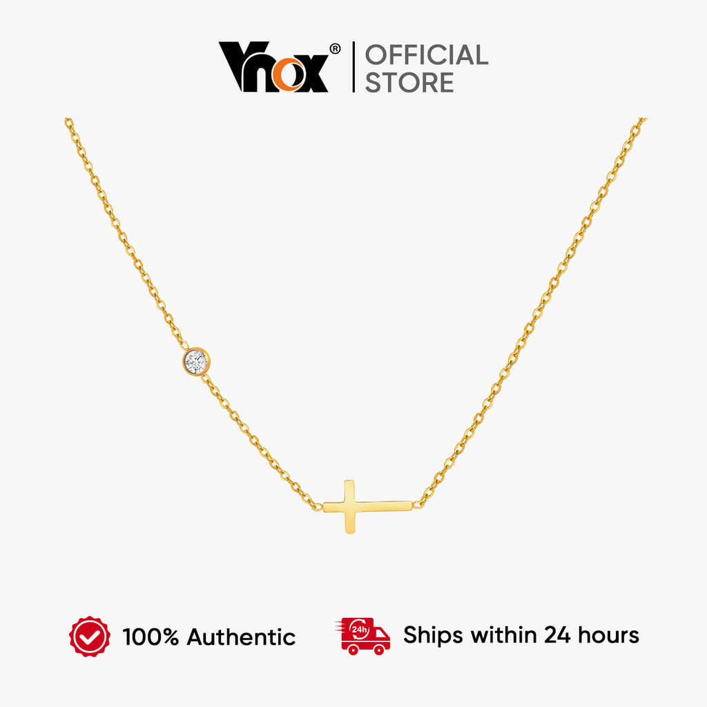 Vnox Zircon Cubic Cross Birthstone Link Chain Colar Para Mulheres , Ouro Aço Inoxidável Delicado Oração De Corrente Cris