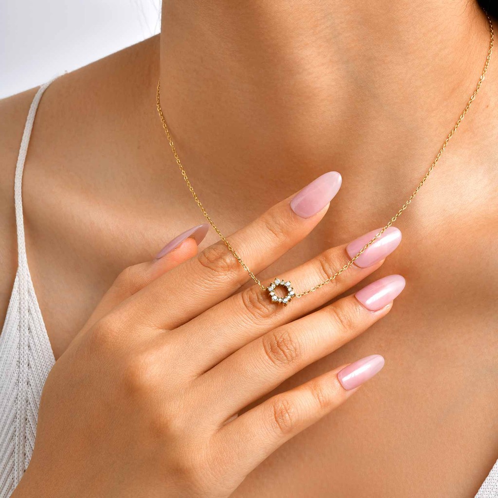 Vnox Zircon Cubic Girassol Pingente Pulseira Colar Para Mulheres , Conjunto De Jóias De Aço Inoxidável Presente
