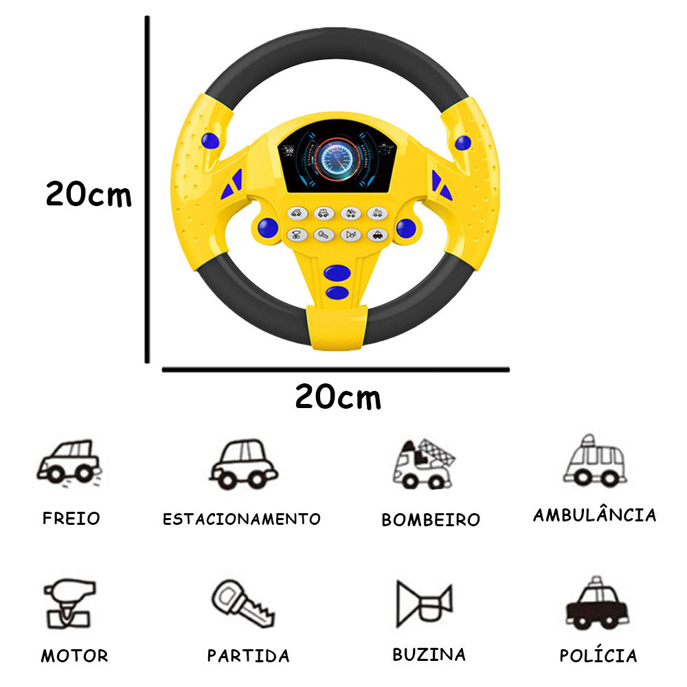 Volante Infantil com Sons - Gira 360º e Fixação por Ventosas! Desperte a imaginação do seu pequeno piloto com o nosso Volante Infantil com Sons! Este brinquedo é perfeito para crianças que adoram carros e querem imitar seus pais ao volante. Com sons realistas e rotação completa de 360º, este volante promete horas de diversão e aprendizado. Características Principais: Sons Realistas: Equipado com diversos sons de carro, como buzina, motor e sirenes, para uma experiência imersiva. Gira 360º: Rotação completa para que a criança possa virar o volante como se estivesse dirigindo de verdade. Fixação por Ventosas: As ventosas de alta aderência permitem fixar o volante em qualquer superfície lisa, como mesas e vidros, garantindo estabilidade durante a brincadeira. Botões Interativos: Diversos botões que ativam diferentes sons, estimulando a coordenação motora e a curiosidade. Design Atrativo: Cores vivas e design ergonômico, ideal para mãos pequenas. Benefícios: Desenvolvimento: Estimula a coordenação motora, a imaginação e a percepção auditiva da criança. Interatividade: Promove a interação e o aprendizado através de sons e movimentos. Versatilidade: Fácil de instalar e remover, permitindo que a brincadeira aconteça em qualquer lugar. Especificações Técnicas: Material: Plástico ABS resistente e seguro Baterias: 2 pilhas AA (não inclusas) Fixação: 3 ventosas de alta aderência