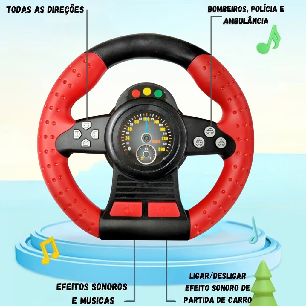 Volante Brinquedo Simulador Vermelho Som Gira Infantil 360 Ventosa