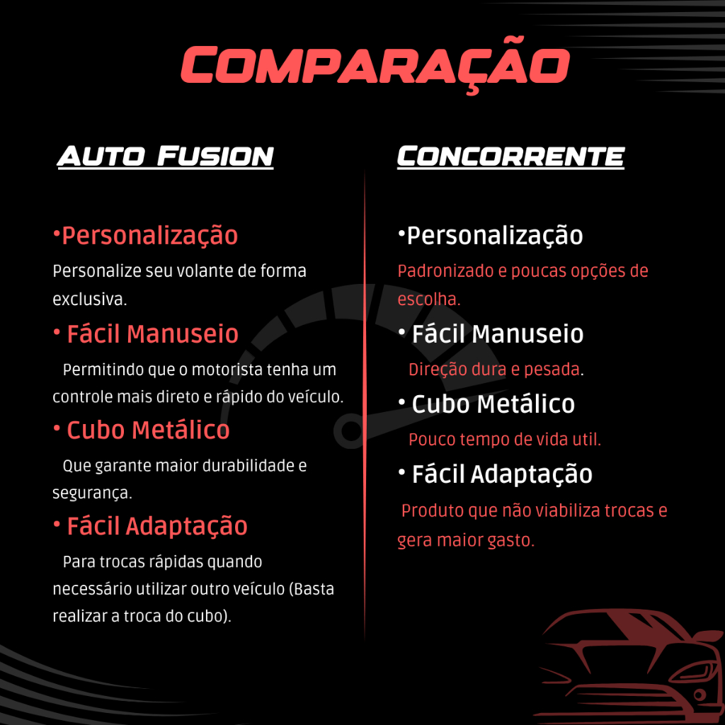 ESPECIFICAÇÃO TÉCNICA • Diâmetro de 370mm; • Profundidade de 120mm. MODELOS COMPATÍVEIS • CV106 • Opala • Caravan 78 em diante • S10 • Blazer • Silverado • D20 até 92 Caso não tenha encontrado o modelo do seu veículo neste anúncio, nos consulte. IMPORTANTE • Garantia de 3 Meses; • Somos FABRICANTES ESPECIALIZADOS no segmento automotivo, seguimos um processo rigoroso de fabricação e qualidade; • Entrega ágil e rápida após sua compra; • Enviamos todos os nossos volantes com CUBO ADAPTADOR; • Após a instalação, perde-se a função AIRBAG; • RECOMENDAMOS QUE A INSTALAÇÃO SEJA FEITA POR PROFISSIONAL ESPECIALIZADO. • Fabricamos volantes em POLIURETANO RESISTENTE; • Nossos volantes possuem similaridade ao original com acabamento texturizado e acionamento da buzina. Sua satisfação é nossa maior recompensa! Estamos à disposição e teremos o imenso prazer em atendê-lo!