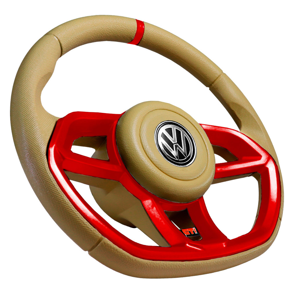 Volante Esportivo Gti bege Vermelho Band Gti Volkswagen Fusca Brasília Buggy