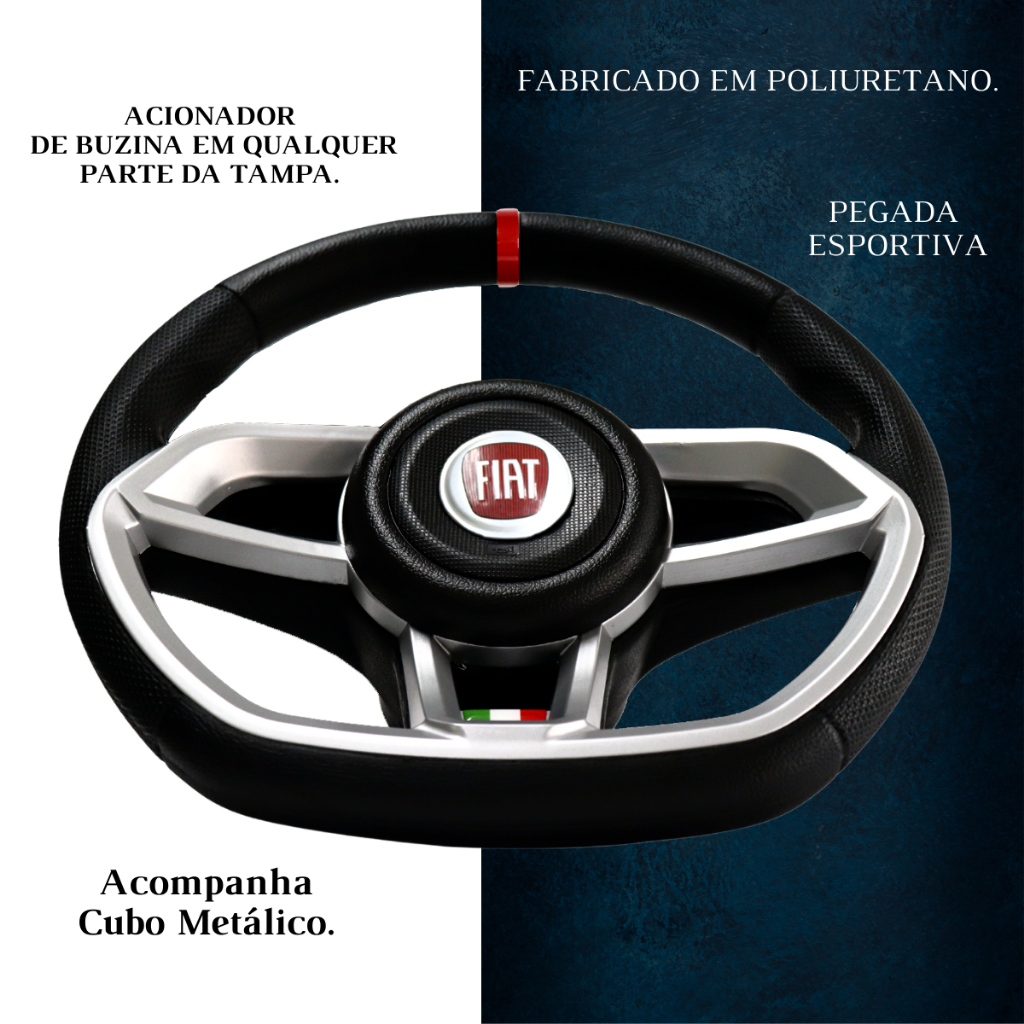 Especificação Técnica: • Diâmetro de 370mm; • Profundidade de 120mm; Modelos Compatíveis: • Fiat Uno Fire • Fiat Palio • Fiat Palio Weekend • Fiat Marea • Fiat Brava • Fiat Idea • Fiat Siena • Fiat Strada • Fiat Punto • Fiat Stilo • Fiat Ducato • Fiat Doblô 2001 Em Diante Conteúdo da Embalagem: • 01 Volante Esportivo; • 01 Cubo adaptativo; • 01 Conjunto de Parafusos de Fixação; • 01 Aplique Central; • 01 Emblema; Importante: • Garantia de 3 Meses; • A loja não se responsabiliza pelo mau uso do produto; • ORIENTAMOS QUE A INSTALAÇÃO SEJA REALIZADO POR PROFISSIONAL ESPECIALIZADO; • Nenhum de nossos volantes são compatíveis com veículos que possuem air bag; Agradecemos a preferência!"