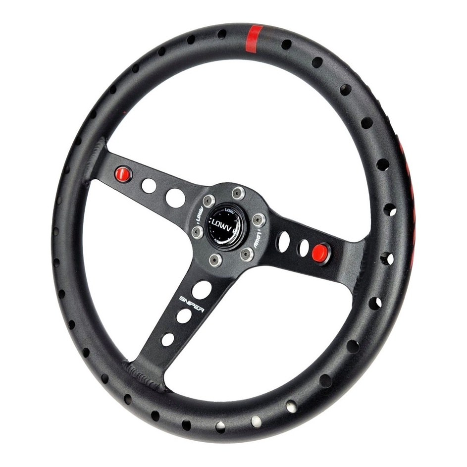 Volante Esportivo Lowv Sniper Alumínio / Tarja Vermelha / Alumínio Preto + Cubo