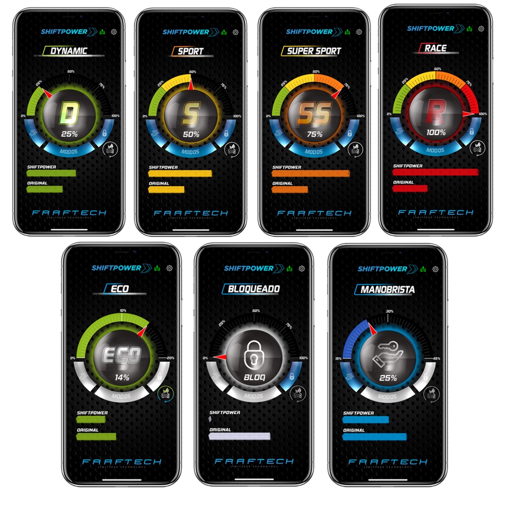 Bem-vindo(a) a AT4U! Shift Power Faaftech: Chegou o novo Shiftpower, o módulo de performance que mudará a sua experiência ao dirigir, eliminando o atraso de aceleração com diversos modos de condução e segurança. Para permitir o máximo de personalização em sua performance, agora com bluetooth integrado e aplicativo disponível para IOS e Android. O SHIFTPOWER 4.0 é um módulo eletrônico plug and play, desenvolvido com alta tecnologia para deixar a resposta de aceleração mais rápida, mudando radicalmente o desempenho do seu veículo ao simples toque de uma tecla. Faaftech Shift Power – Desenvolvido com alta tecnologia, por um grupo de engenheiros com vasta gama de experiência em projetos no mesmo seguimento, nosso firmware segue todos paramentos legais de cada motor. Projetado e testado em várias condições. Hoje a grande maioria dos veículos utilizam o sistema eletrônico de aceleração drive -by-wire para proporcionar uma suavidade na aceleração e durante as trocas de marcha, o que significa que a aceleração do veículo hoje é feita através de uma interface eletrônica. O ShiftPower foi desenvolvido para deixar o veículo com uma resposta mais rápida através do remapeamento do sinal de aceleração, o que faz mudar radicalmente o desempenho do veículo ao simples toque de uma tecla. Modos de condução: - Original: (desligado) - Dynamic: (verde fraco) mais suave utilizado em carros automáticos e aceleração mais linear - Sport: (verde forte) resposta média-rápida, ideal para uso em cidades - Super Sport: (vermelho fraco) Resposta rápida com tocada mais esportiva. Maior prazer ao dirigir - Race: (vermelho forte) resposta extremamente agressiva, indicado para uso em rodovias, ideal para ultrapassagens rápidas - Modo Parking: Quando selecionado deixa o pedal com cerca de 30% da resposta original. Ideal para quando for deixar o carro em lava jato ou em estacionamentos onde tem manobrista, assim não é possível acelerar muito o carro. - Modo Eco: permite atenuar a resposta de aceleração, possibilitando maximizar a economia de combustível. Especificações Técnicas: - Resposta imediata de aceleração - Instalação Plug and Play - Produto 100% nacional - Elimina atraso do Acelerador Eletrônico em um toque - Maior prazer ao dirigir - Ultrapassagens mais seguras - Direção mais esportiva - Fácil instalação (conecte e acelere sem nenhuma programação) - Plug and play (Não altera a originalidade do carro) - Disponível para mais de 200 modelos - NOVO DESIGN NOVA CENTRAL Nova central com bluetooth integrado, controle por aplicativo e dimensões ultra compactas. NOVO BOTÃO Novo botão ergonômico com acabamento sofisticado e visual moderno. CABOS RESISTENTES Cabos discretos e modernos com proteção por malha de nylon expansiva padrão automotivo e conectores impermeáveis Ip67. MODO ECO - O modo eco permite atenuar a resposta de aceleração, possibilitando maximizar a economia de combustível. - Com respostas de aceleração mais suaves, esse modo atende tanto quem busca economia, quanto quem precisa diminuir a resposta de aceleração, como para adolescentes, recém habilitados ou mesmo para uma direção mais segura em veículos muito potentes. - Totalmente personalizável, pode ser ajustado para uma redução de até 20% na resposta, sem limitar a aceleração final do veículo. MODO MANOBRISTA - O modo manobrista limita o pedal do acelerador em 30% podendo ser ajustado entre 15 a 45% através do aplicativo, pode ser ativado tanto pelo App quanto pelo botão. - Com o uso do App é possível configurar a saída automática por presença ao se aproximar do veículo, tornando sua utilização muito mais prática. MODO BLOQUEIO - O modo bloqueio funciona como um dispositivo Anti-Furto anulando a resposta total do acelerador. Também pode ser ativado pelo aplicativo e pelo botão. - Assim como no modo Manobrista também é possível configurar a saída automática do modo Bloqueio por presença. - Total personalização com mais de 300 mapas de performance.* - Opção de desativação dos modos Manobrista e Bloqueio por presença.* - Ajuste automático da iluminação do botão para os modos dia e noite.* - Configuração de limites para o modo manobrista.* - *(Desde que o bluetooth esteja conectado e o App ativo). AJUSTE DOS MODOS DE CONDUÇÃO Os modos de condução Dynamic, Sport, Super Sport e Race podem ser configurados pelo App para ter uma resposta personalizada com acesso rápido pelo botão. MAPAS DE PERFORMANCE Além das opções de ganho e de Modos, as curvas de resposta podem ser selecionadas entre Linear, Dinâmico e Exponencial, totalizando mais de 300 opções para sua performance. Conteúdo da embalagem: - 01 Módulo Faaftech ShiftPower - 01 Chicote para instalação - Manual com certificado de garantia IMPORTANTE: * Postagem em até 24h.* * Entrega Garantida.* * COMPRE COM SEGURANÇA.* * Tire suas dúvidas via chat com nossos especialistas.*