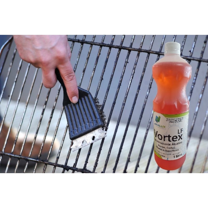 Vórtex LF é indicado para limpeza de fornos, coifas, chapas, fritadeiras e superfícies impregnadas sujidades oleosas carbonizadas e não carbonizadas. Produto concentrado. Modo de usar Remoção de gordura carbonizada - Diluir o produto em água na proporção de 1:5 e aplicar na superfície a ser limpa, deixar agir, esfregar e enxaguar. Limpeza de fornos, coifas d chapas - Diluir o produto na proporção de 1:10 e aplicar na superfície a ser limpa, deixar agir, esfregar e enxaguar. Desengordurante de superfícies - Diluir o produto na proporção de 1:100 e aplicar na superfície a ser limpa, deixar agir, esfregar e enxaguar. Deve ser utilizado sempre com luvas. No vídeo foi utilizado gatilho espumador. Embalagem - 1 Litro