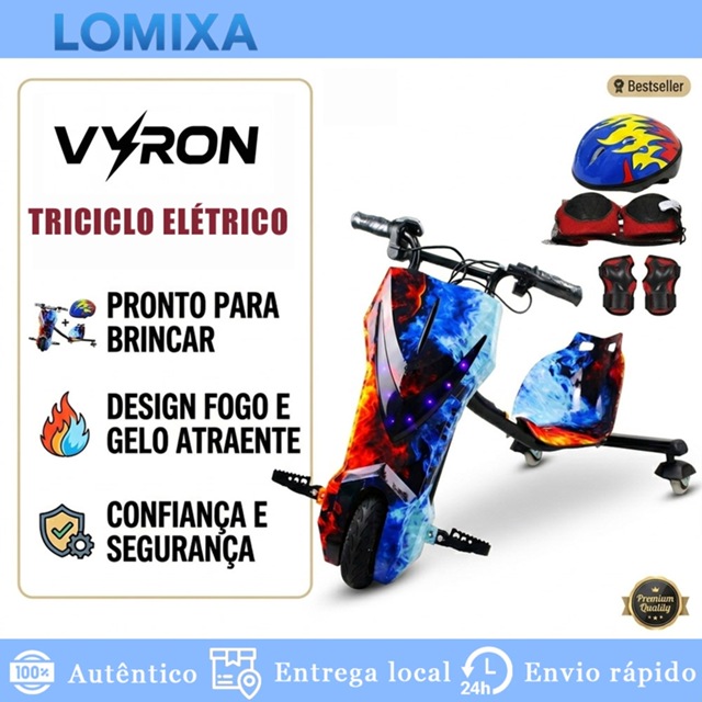 | VYRON Triciclo Elétrico Drift Trike 250W Giro 360° LED Bluetooth 3 ... | R$ 1.459,00 | 51% | 4.9/5 | 74 |