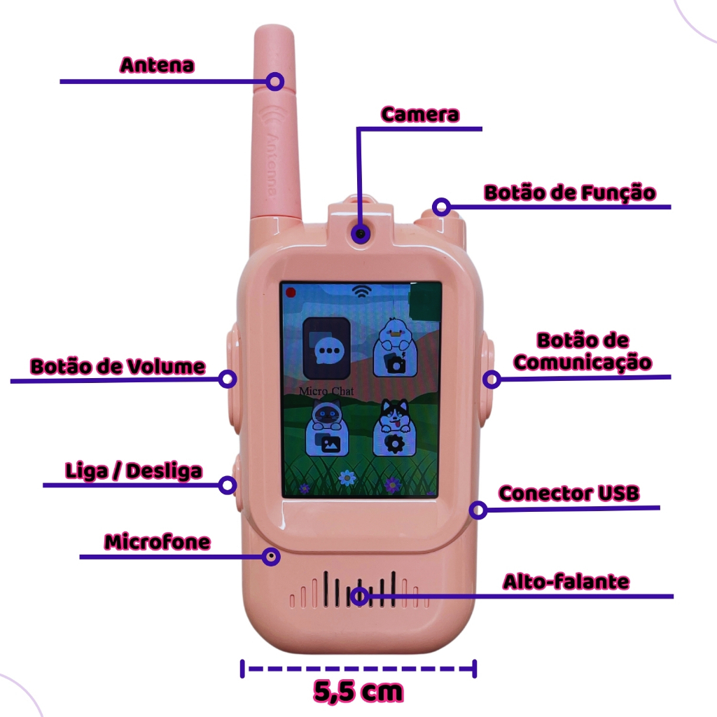| Walkie Talkie Infantil Gostey Radio Comunicador Com Camera E Video ... este produto | R$ 185,56 | 50% | 5.0/5 | — |