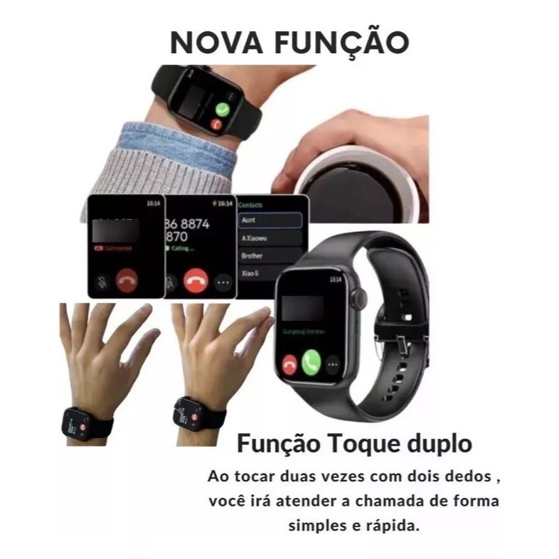 NOVO LANÇAMENTO SMARTWATCH WATCH X SERIE 10 2024 - Serie 10 AMOLED 45mm - Baixa Músicas - - Sistema integrado: MicroOS10 c/ Galeria Fotos - Acompanha: - 1x Pulseira de (Silicone). - 1x Pulseira de Metal na cor da caxa do Relógio (Milanese). - 1x Capa de Proteção - 1x Cabo de Carregamento APLICATIVO UTILIZADO: Mactive Pro FUNÇÕES: • Novo Sistema Micro OS 10 (alta performance) • Album/Galeria de Fotos (Nova Função) • Ilha Dinâmica (mostra funções na ilha) • 2GB de memória interna para Baixar músicas • ChatGPT (Nova Função) • Menu Colmeia • Faz e recebe ligações • Recebe notificação de aplicativos de redes sociais • Bloqueio por senha • Bússola de alta precisão • Pedômetro • Funções esporte • Monitor de sono • Pressão arterial • Monitora Oxigênio • Monitor 24hs de batimentos cardíaco. • Controle menstrual • Conecta direto com fone de ouvido bluetooth • Informações push: notificação de mensagens recebidas síncrona do centro de notificação em seu telefone • Chamadas: fazer & atender chamadas depois de conectar bluetooth com telefone inteligente • Tecnologia: always play - onde você tem uma tela acessa o tempo todo de sua preferência • Comando de voz compatíveis: Alexa, Siri e Google • NFC (destravamento de portas que utilizam a tecnologia e Pagamentos via PayPal. • Assistente de voz • Monitor de sono • Trava para Trocar Pulseira • Treinamento de respiração • Música de bluetooth • Treino • Tempo • Cronômetro relógio de pulso • Despertador relógio despertador • Temporizador • Câmera Encontre o telefone • Calculadora • Telefone: Discagem, atende ligações, é possível falar diretamente no relógio, Lista telefônica, recebe SMS • Player de Música: pode controlar suas músicas • Funções Esportes: Caminhada, Corrida, Alpinismo, Ciclismo, Basquete, Badminton, Futebol, Ioga, Tênis de Mesa , Pular Corda, Tênis e Levantamento de Peso ESPECIFICAÇÕES DA TELA: -Tela Gigante de 1.95 mm (AMOLED) -Taxa de resposta de 60Hz -Densidade de pixel 344PPI -Resolução da tela 428*518px -Tela 64-bit (ótima saturação de cores) -Tela sensível ao toque: multi-toque totalmente apto -Capacidade da Bateria: 450mAh (carregamento em 2h) • Resistente à água IP68 • (Não é recomendado para mergulhos, saunas ou piscinas aquecidas). (Caso isso ocorra, perderá a garantia do relógio) • IP68: 1. Não molhar em água quente ou morna. 2. Não pressionar os botões quando estiver submerso embaixo d'água. 3. Não permanecer mais que 05 minutos submerso embaixo d'água. 4. IP68: A prova de poeira + protegido contra imersão com limite geral de 0,5 metro. 5. A garantia não cobre danos do smartwatch submerso em água. • NOTA IMPORTANTE: Os relógios inteligentes são projetados para ajudar as pessoas a viver suas vidas mais saudáveis. Todos os resultados de medições são apenas para referência. Eles são baseados em algoritmos e sensores super científicos. ITENS INCLUSOS NA CAIXA: - 1 Smartwatch Watch X Serie 10 Lancamento. - 2 Pulseiras: 1x Silicone 1x Metal - 1 Capa de proteção. - 1 Cabo Carregador por indução - 1 Manual de instrução Aguardamos sua compra Garantia do vendedor: 30 dias