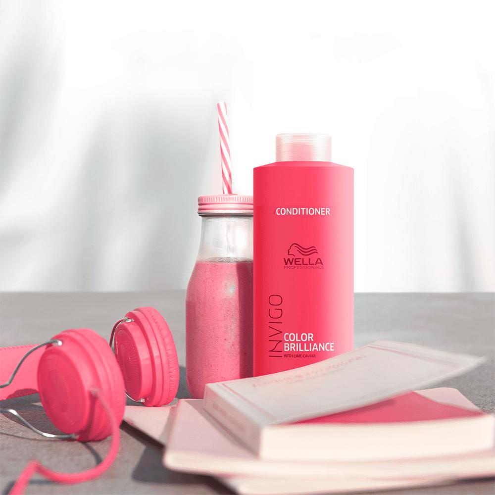 * DESCRIÇÃO TÉCNICA: INVIGO COLOR BRILLIANCE Condicionador promove um tratamento intenso para melhorar a superfície do fio e aumentar o brilho da cor. Contém uma poderosa combinação de novos ingredientes para manter a vibração da cor e proteger o cabelo colorido. As moléculas de encapsulamento de cobre mantêm a vibração da cor do cabelo. A Histidina e a Vitamina E ajudam a controlar o processo de oxidação após o procedimento de coloração e ajudam a proteger a cor (Anti-Oxidant Shield Technology). O Caviar de Lima é conhecido por conter várias vitaminas e anti-oxidantes. Garante 7 (sete) semanas de proteção da cor do cabelo se o uso do produto for regular. * MODO DE USO: Aplique no comprimento do cabelo molhado. Distribua o produto igualmente e então enxague bem. * RESULTADO: Cabelos tratados com Ph otimizado. Garante 7 semanas de proteção e aumento do brilho da cor do cabelo quando o uso é regular.