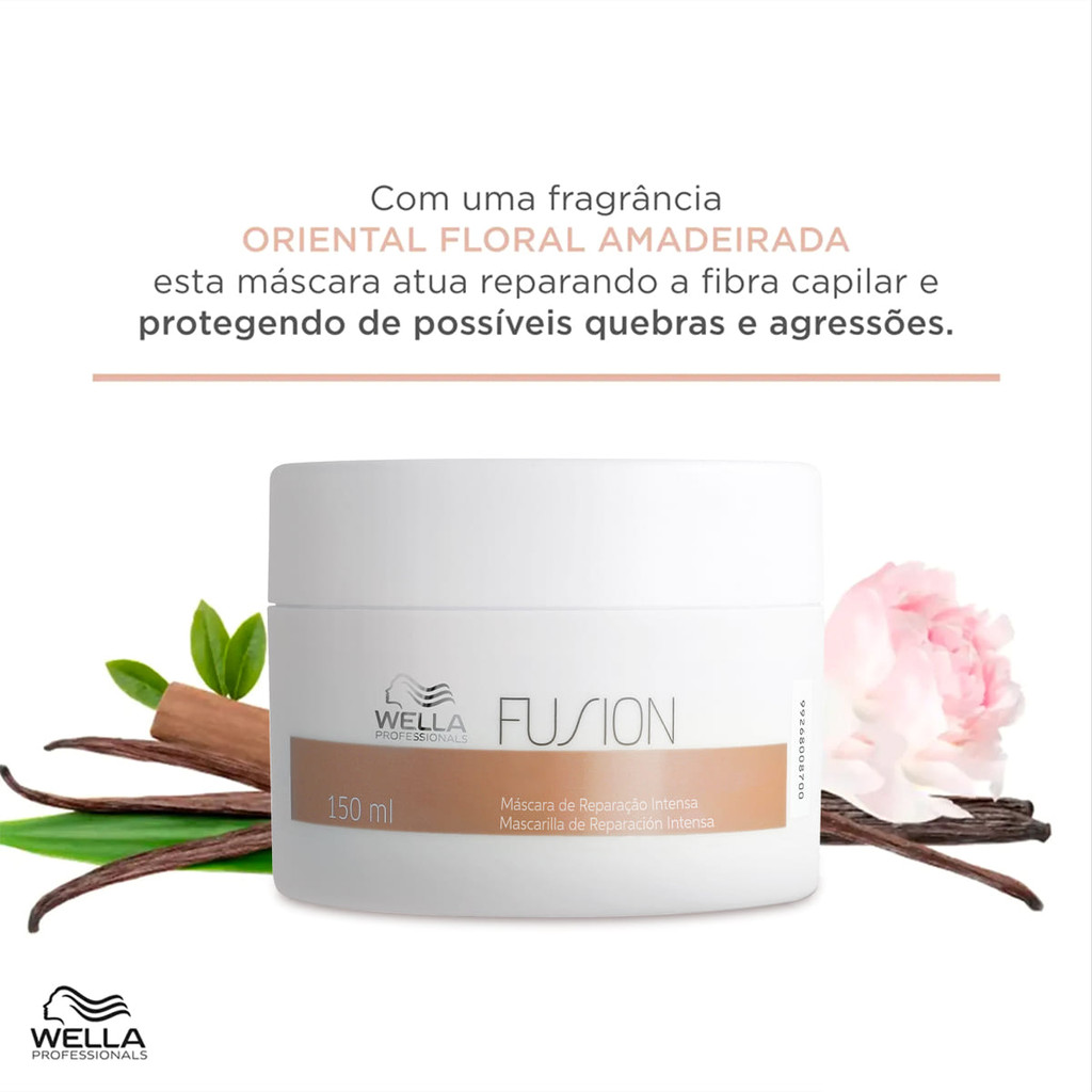 Wella Professionals Fusion - Máscara Capilar 150ml Para cabelos danificados. Fortalece os fios fragilizados, reparando a fibra capilar. Sua fórmula auxilia no fortalecimento do cabelo, garantindo mais brilho e saúde a partir da primeira aplicação. Seus agentes condicionam profundamente os fios, facilitando a finalização do cabelo. Conselho de Aplicação Após lavar os fios, retire o excesso de água dos fios e aplique a máscara no comprimento e pontas. Massageie e deixe agir os 30 segundos. Enxágue em seguida.