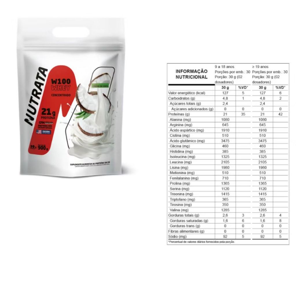 O W100 é um suplemento elaborado com a proteína concentrada do soro do leite (WPC) extraída através da microfiltragem de fluxo cruzado (CFM). Esse produto possui alto valor nutricional e elevado teor de aminoácidos essenciais. Além da alta qualidade, possui uma grande variedade de sabores incríveis para deixar a sua dieta ainda mais deliciosa e prática. ------------------------------- Benefícios do W100 ------------------------------- De 19g à 21g de proteína por dose; As proteínas auxiliam na formação dos músculos e ossos; Cross Flow Microfiltration (CFM); Prático e versátil. --------------------------------------------------------------------------- PROTEÍNA CONCENTRADA, LEVE E DELICIOSA --------------------------------------------------------------------------- Fornece alto teor de aminoácidos essenciais; Contribui para regulação da função imunológica; Contribui para a saciedade; Favorece a síntese proteica; Sabor irresistível que vai muito bem até na preparação simples com água; Low carb; Livre de acessulfame K e aspartame, adoçantes artificiais que podem causar problemas endócrinos; O melhor custo-benefício para você. ---------------------------- Modo de preparo: ---------------------------- Diluir 30 g (02 dosadores) em 200 ml de água. ----------------------------------------------- Sugestão e indicação de uso: ----------------------------------------------- - Consumir uma a duas porções ao dia. Você pode consumir o W100 no: - Pré e pós-treino; - Café da manhã e lanches intermediários; - Ou conforme orientação de nutricionista ou médico. ---------------------------- Sabor Cookies & Cream Ingredientes: Proteína concentrada do soro do leite (CFM), cookies, aroma idêntico ao natural de chocolate branco e cookies, espessante goma xantana, antiumectante dióxido de silício e edulcorante sucralose. NÃO CONTÉM GLÚTEN. CONTÉM LACTOSE. ALÉRGICOS: CONTÉM DERIVADOS DE LEITE E SOJA*. *Ingrediente usado no processo de instantaneização da proteína do soro do leite. Sabor Creme de Baunilha Ingredientes: Proteína concentrada do soro do leite (CFM), aroma idêntico ao natural de baunilha, espessante goma xantana, acidulante ácido cítrico, antiumectante dióxido de silício e edulcorante sucralose. NÃO CONTÉM GLÚTEN. CONTÉM LACTOSE. ALÉRGICOS: CONTÉM DERIVADOS DE LEITE E SOJA*. *Ingrediente usado no processo de instantaneização da proteína do soro do leite. Sabor Creme de Coco Ingredientes: Proteína concentrada do soro do leite (CFM), aroma artificial de coco, coco desidratado, aroma idêntico ao natural de chocolate branco, espessante goma xantana, acidulante ácido cítrico, antiumectante dióxido de silício e edulcorante sucralose. NÃO CONTÉM GLÚTEN. CONTÉM LACTOSE. ALÉRGICOS: CONTÉM DERIVADOS DE LEITE E SOJA*. *Ingrediente usado no processo de instantaneização da proteína do soro do leite. Sabor Double Chocolate Ingredientes: Proteína concentrada do soro do leite (CFM), cacau pó, aroma idêntico ao natural de chocolate, espessante goma xantana, acidulante ácido cítrico, antiumectante dióxido de silício e edulcorante sucralose. NÃO CONTÉM GLÚTEN. CONTÉM LACTOSE. ALÉRGICOS: CONTÉM DERIVADOS DE LEITE E SOJA*. *Ingrediente usado no processo de instantaneização da proteína do soro do leite. Sabor Strawberry Milkshake Ingredientes: Proteína concentrada do soro do leite (CFM), aroma idêntico ao natural de morango, espessante goma xantana, acidulante ácido cítrico, antiumectante dióxido de silício, edulcorante sucralose e corante vermelho bordeaux. NÃO CONTÉM GLÚTEN. CONTÉM LACTOSE. ALÉRGICOS: CONTÉM DERIVADOS DE LEITE E SOJA*. *Ingrediente usado no processo de instantaneização da proteína do soro do leite. Sabor Havanna Ingredientes: Proteína de soro do leite concentrada (CFM), doce de leite em pó, aromatizante idêntico ao natural de doce de leite, espessante goma xantana e carragena, antiumectante dióxido de silício, edulcorante sucralose e corante natural de caramelo e artificial amarelo crepúsculo. CONTÉM LACTOSE. ALÉRGICOS: CONTÉM DERIVADOS DE LEITE E SOJA*. NÃO CONTÉM GLÚTEN. *Ingrediente usado no processo de instantaneização da proteína do soro do leite.