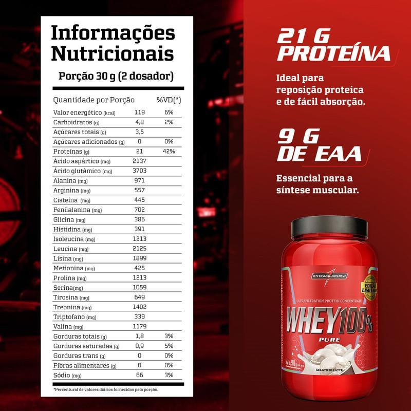 Whey 100% Pure 900g Integralmedica - 21g de Proteína para Hipertrofia e Recuperação Muscular