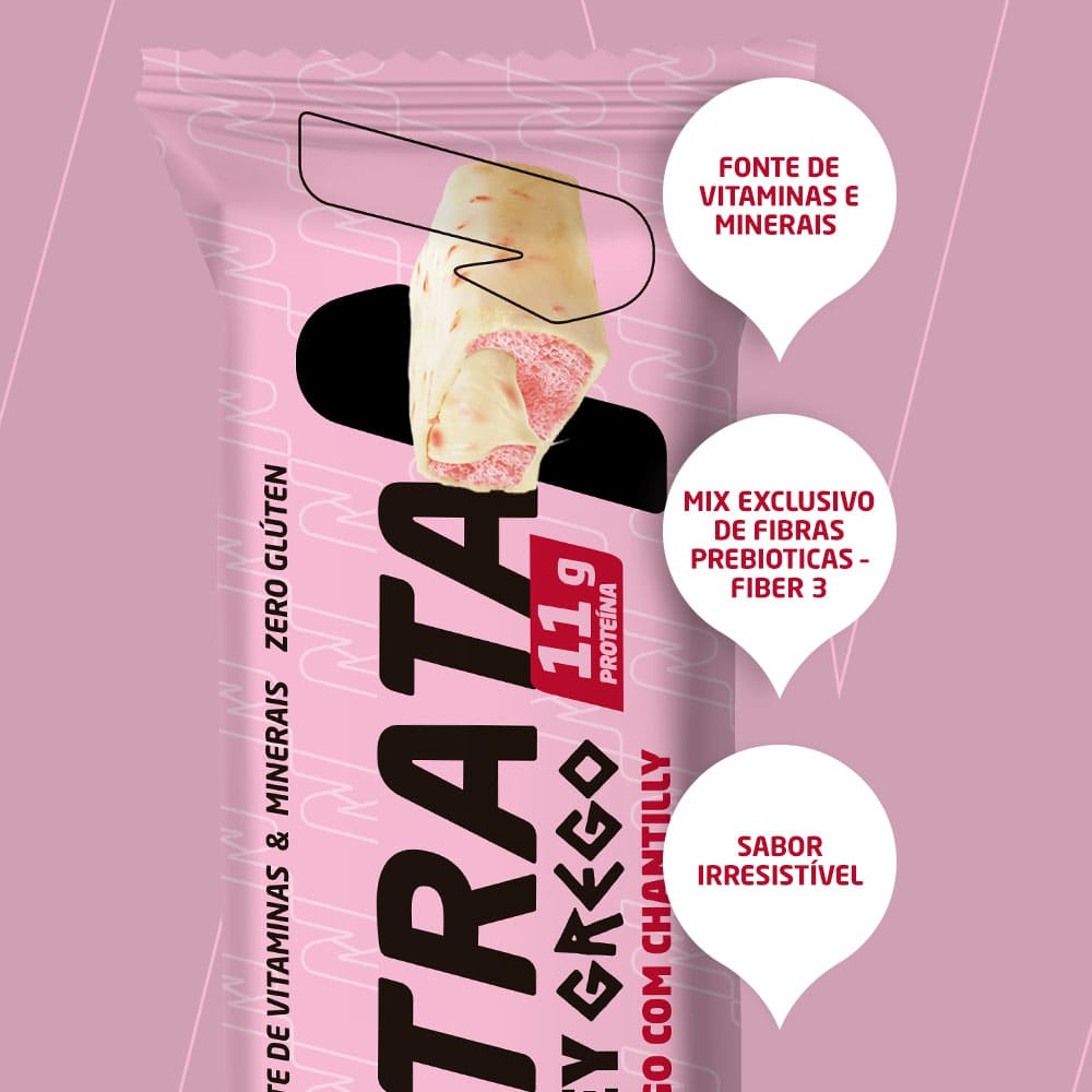 Whey Grego Bar 12Un 40g Sabor Morango Com Chantily - Nutrata