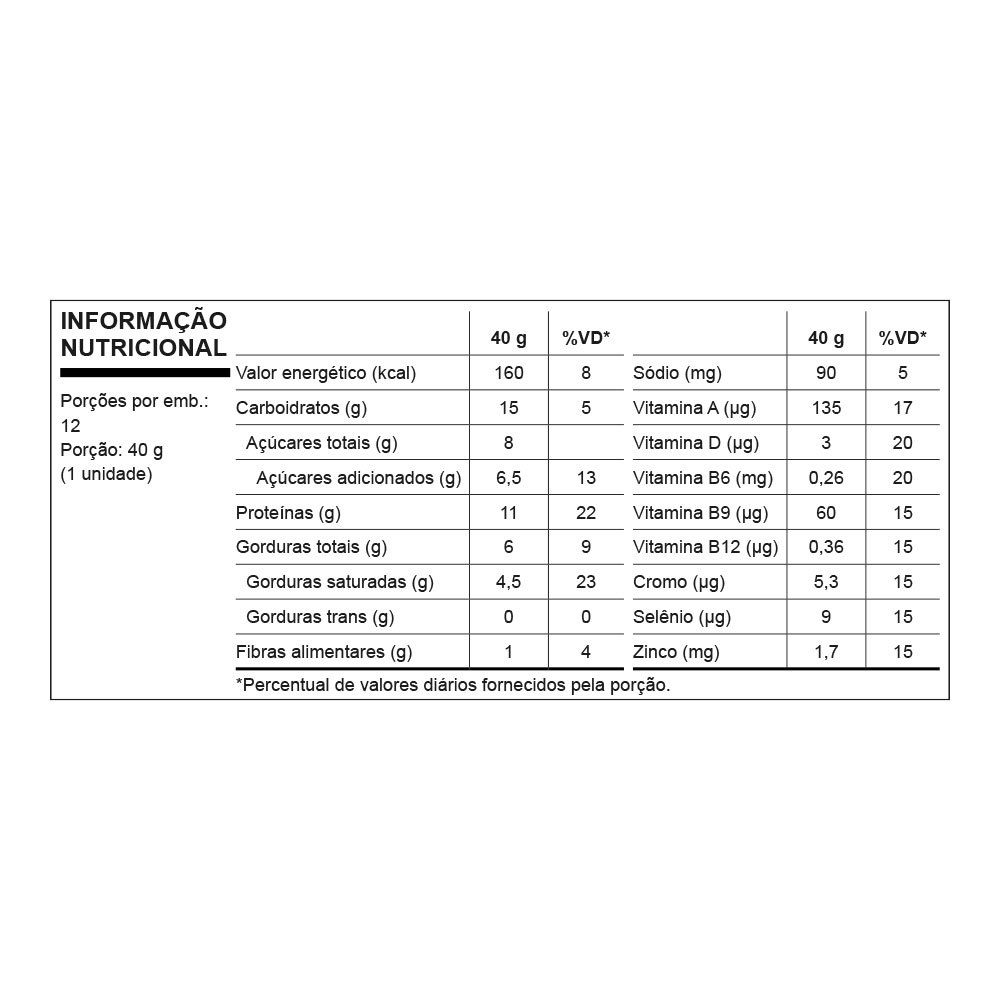 SABOR INCOMPARÁVEL, CREMOSIDADE ÚNICA! Composta pela associação de diferentes proteínas de alto valor biológico que conferem completo perfil de aminoácidos, com o toque de sabor incomparável e cremosidade única do iogurte GREGO original. GREGO BAR É PERFEIÇÃO EM FORMA DE BARRA PROTEICA. Diferenciais 11g de proteína; CFM (Cross Flow Microfiltration); Zero Glúten; Fibras alimentares; Com Iogurte Grego; Combinação e proteínas (WPC + WPI + Caseinato de cálcio + Peptídeos de colágeno com alto grau de pureza); Minerais (Zinco, Selênio e Picolonata de Cromo); Mix especial de vitaminas (A, B6, B9, B12 + D3). CONTÉM LACTOSE. ALÉRGICOS: CONTÉM DERIVADOS DE LEITE E SOJA. PODE CONTER AMENDOIM, AVELÃ E PISTACHE. NÃO CONTÉM GLÚTEN. Sugestão e Indicação de Uso: Consumir uma unidade ao dia.