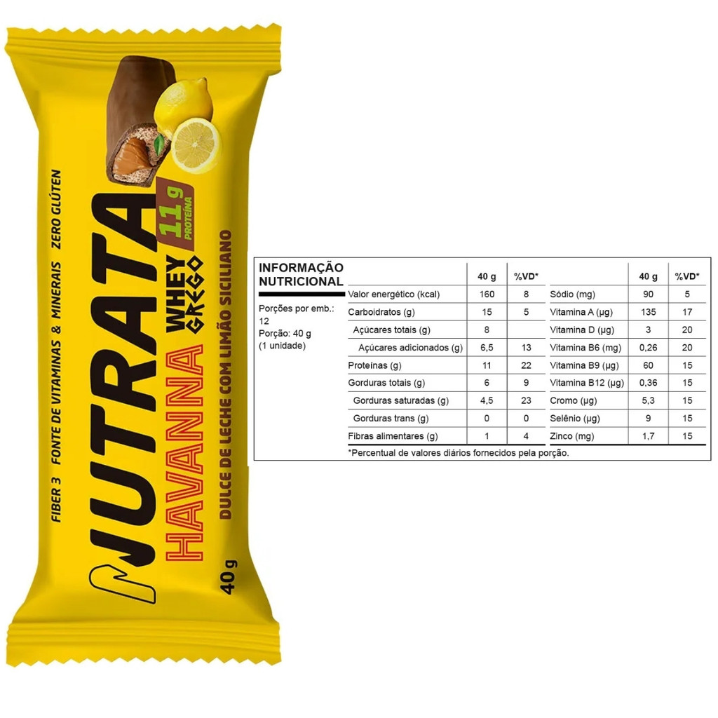 Whey Grego Bar Havanna Display C/12 Barras De 40g Dulce De Leche E Limão Nutrata
