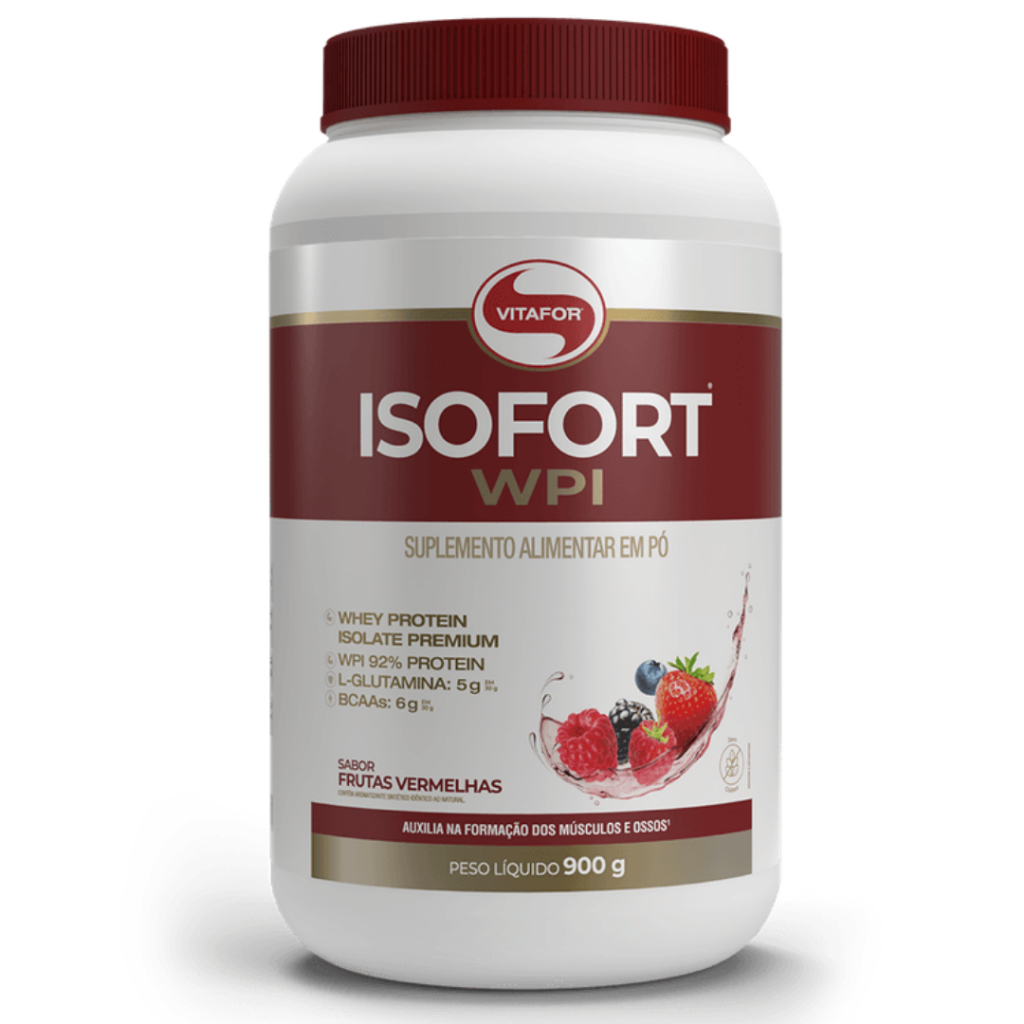 Vitafor ISOFORT é a proteína Isolada Premium da Vitafor, contém alta concentração de proteína, nutriente esse que auxilia na formação dos músculos e ossos. Desenvolvido por um sistema inteligente de distribuição de proteína isolada e parcialmente hidrolisada do soro de leite (WPI) de excepcional qualidade e de elevada concentração (92%), o qual emprega uma tecnologia exclusiva de extração de proteína, proporcionando assim, o melhor da proteína Isolada com excelente digestibilidade e máxima absorção de nutrientes. Isofort ou Isofort Plant Isofort possui em sua formulação a proteína isolado do soro do leite. Cada dose recomendada (30g), possui 26 gramas de proteína, sendo 5g de glutamina e 6g de BCAA Benefícios do produto: As proteínas auxiliam na formação dos músculos e ossos. Diferenciais: Whey Protein Isolate Premium; Proteína de rápida absorção e alto valor biológico; 5g de L-Glutamina em 30g; 6g de BCAA em 30g. Indicado para crianças (a partir de 4 anos) e adultos; Extraído por elevado grau tecnológico por ultrafiltração, microfiltração e nanofiltração; Alta concentração proteica - 92% de proteína nos sabores: Neutro, Baunilha, Chocolate e Frutas Vermelhas; Zero açúcar. Selo de Qualidade VLabor INGREDIENTES Baunilha: Proteína de soro do leite Isolada (Whey Protein Isolate – WPI), aromatizantes idênticos ao natural, espessante goma xantana e edulcorantes glicosídeos de esteviol (estévia) e taumatina. Chocolate: Proteína de soro do leite Isolada (Whey Protein Isolate – WPI), cacau em pó, aroma idêntico ao natural, edulcorantes glicosídeos de esteviol (estévia) e taumatina e espessante goma xantana. Frutas Vermelhas: Proteína isolada do soro de leite (Whey Protein Isolate - WPI), polpa de morango, acidulante ácido cítrico, aroma idêntico ao natural de frutas vermelhas, espessante goma xantana, edulcorante sucralose e corante natural carmim. Sem sabor: Proteína de soro do leite Isolada (Whey Protein Isolate – WPI). BENEFÍCIOS -Proteína de rápida absorção e alto valor biológico; -Alta concentração proteica (92%) -6g de L-Glutamina em 30g; -6g de BCAA em 30g; -Indicado para crianças (a partir de 4 anos) e adultos. ALÉRGICOS CONTÉM DERIVADOS DE LEITE E LECITINA DE SOJA. CONTÉM LACTOSE. NÃO CONTÉM GLÚTEN. SUGESTÃO DE CONSUMO Ingerir 30g (2 colheres medida) ao dia ou seguir a recomendação de um profissional da saúde. Dissolver os 30g em aproximadamente 300ml de água gelada ou na sua bebida favorita e misture até total homogeneização. ADVERTÊNCIAS "Não exceder a recomendação diária de consumo indicada na embalagem." "Manter fora do alcance de crianças." "Este produto não é um medicamento"