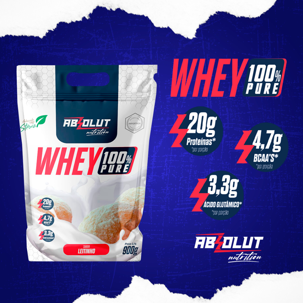 Whey Concentrado 100% – 20g Pure Absolut Nutrition 🔍Descrição do Produto O Whey Concentrado 100% Pure da Absolut Nutrition é o suplemento proteico ideal para quem busca hipertrofia e deseja ganhar massa muscular. Composto principalmente por proteína concentrada do soro de leite (Whey Protein Concentrate), é uma proteína de alto valor biológico, rica em aminoácidos essenciais. 🔍Benefícios -Absorção de média velocidade. -Alta concentração de aminoácidos (BCAA's), superiores a outras fontes proteicas. -Baixo teor de carboidratos e alta pureza da proteína (WPC). -Excelente escolha para quem busca suplementação proteica. 🔍Informações Nutricionais (por porção de 30g) -20g de proteína -4,5g de BCAA’s -3,2g de glutamina -Adoçado com Stévia (sem adoçantes artificiais) 🔍Sabores Disponíveis -Sorvete de Baunilha -Chocolate Belga -Morango com Chantily -Leitinho -Beijinho de Coco 🔍Sugestão de Consumo Consumir uma dose (30g) após o treino ou conforme recomendação de um nutricionista ou médico. 🔍Modo de Preparo Adicionar 30g (2 medidores) em 200 ml de água ou bebida de sua preferência. Misture até a total homogeneização e consuma imediatamente. 🔍Conservação Manter o produto bem fechado, em local fresco e seco. Após aberto, consumir em até 90 dias. ----------------------------------------------------------------------------------------------------------------------------------------------------------------------------------------------- 🔍Dúvidas Frequentes O produto é original? Sim, é um produto original fabricado pela Absolut Nutrition. 🔍É zero lactose? Não, o produto contém derivados do leite. Garanta o seu agora mesmo! Clique no botão "Comprar" para garantir o seu Whey 100% Pure