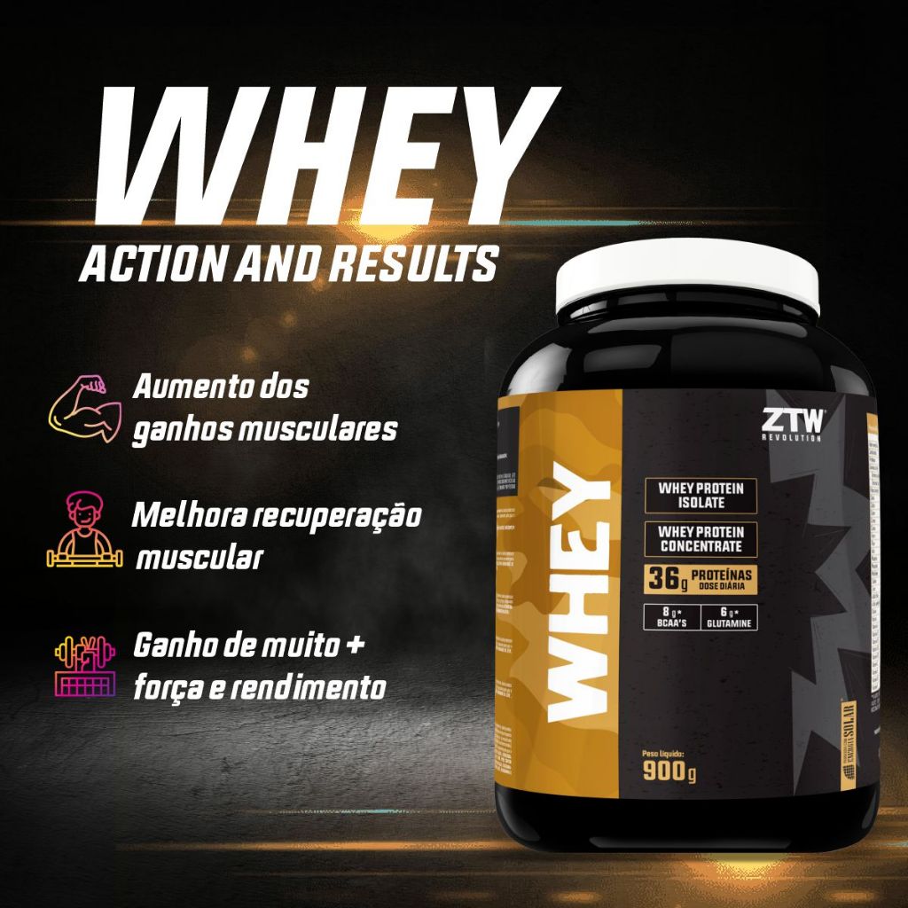 Whey Protein, 900g - Suplemento para definição muscular e Ganho de força - ZTW