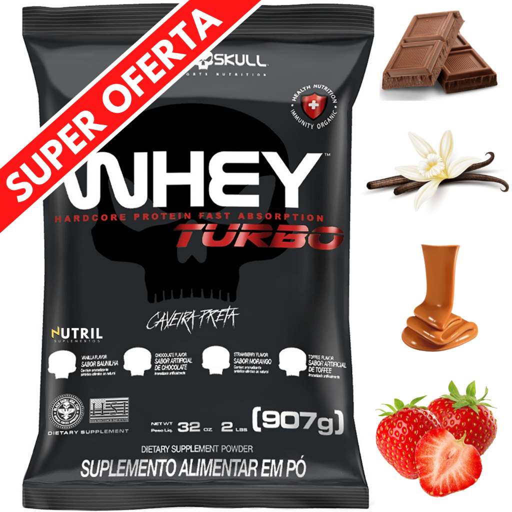 Whey Protein Concentrado TURBO p/ Ganho de Massa Muscular - Black Skull 907G - Refil