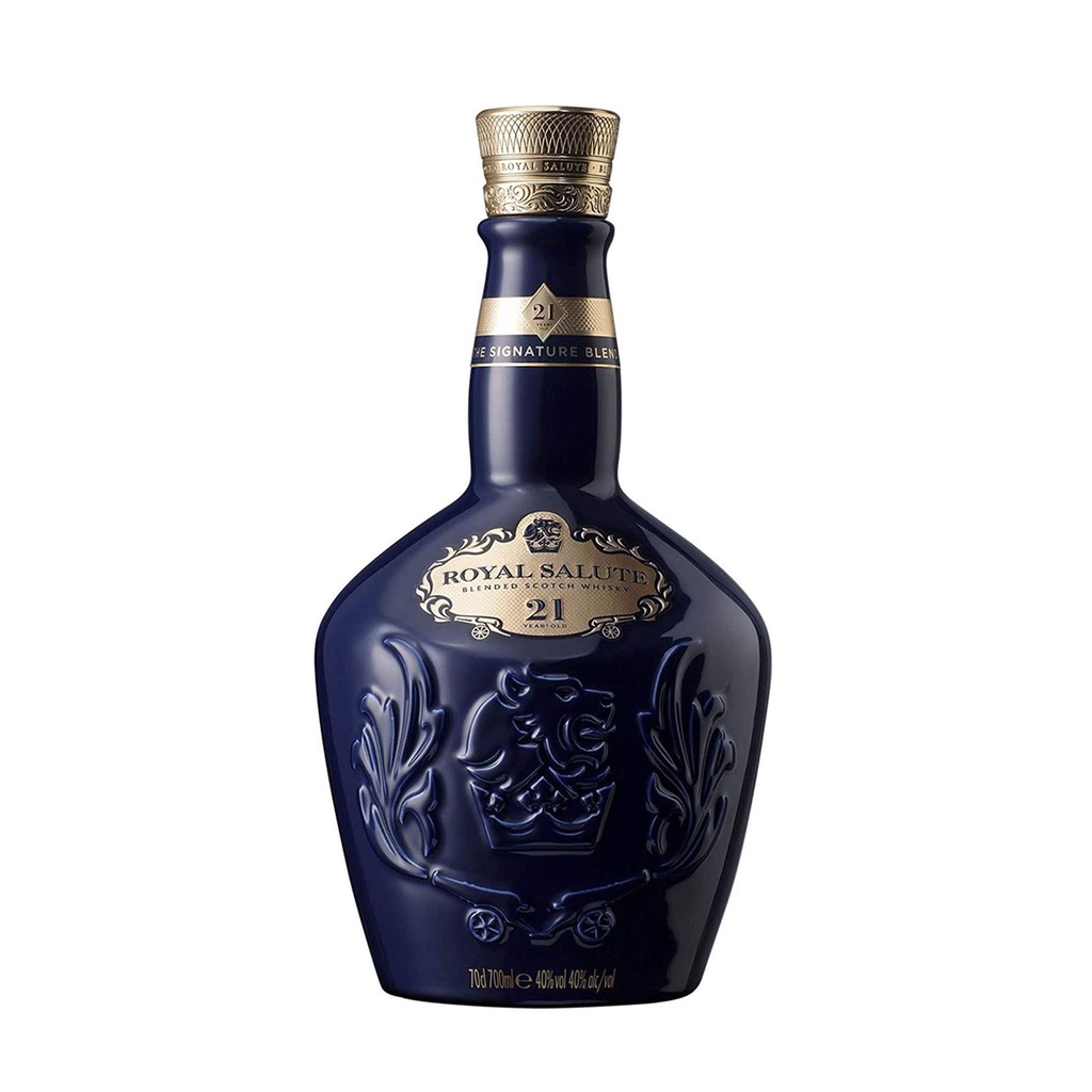 O Royal Salute 21 Anos é um blended whisky escocês produzido pela Chivas Brothers. É composto por uma mistura de whiskies single malt e whiskies de grão de diferentes idades, sendo que o whisky mais jovem utilizado descansou em barris de carvalho por 21 anos. Foi introduzido pela lendária empresa dos irmãos Chivas no ano de 1953, em homenagem a coroação da rainha Elizabeth II, da Inglaterra. Seu nome faz referência ao disparo de 21 tiros de canhão, executados como honra a família real. Além do precioso líquido, o Royal Salute se destaca por sua bela garrafa feita em porcelana, produzida pela prestigiada companhia Wade Ceramics. São três edições de cores diferentes, homenageando cada uma das joias da Coroa Real: azul (safira), verde (esmeralda) e vermelha (rubi). As características de sabor e aromas do Royal Salute foram criadas procurando o equilíbrio e suavidade, portanto, não há a predominância clara de algum aroma, como é comum em single malts. Trata-se de whisky feito com a intenção de ser agradável a todos, apreciadores de whisky ou não, e nisso ele é muito bem sucedido. Apresenta aromas agradáveis e frescos, com destaque para cascas de laranja, especiarias suaves, pão de gengibre e cereais. No paladar, acompanha os aromas frescos e agradáveis, com uma abordagem suave, antes de aparecem notas de caramelo queimado e algo de alcatrão. Em seguida, aspectos da madeira aparecem, além de um leve defumado.