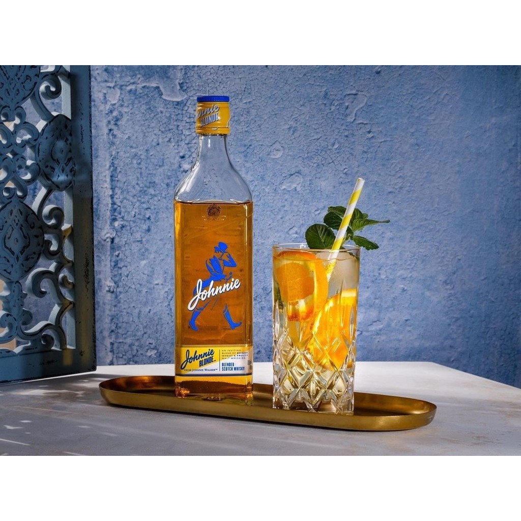 Whisky Johnnie Walker Blonde 750 ml. Johnnie Walker Blonde é mais suave e doce do que outros uísques, isso o torna perfeito para todos que amam diversão e aventura. Os whiskies que compõem o Johnnie Blonde foram especialmente selecionados pelo seu aroma suave e frutado. É tão saboroso para os fãs de uísque quanto para qualquer pessoa que pensa que não gosta de uísque. Johnnie Blonde foi premiado com a medalha de ouro do International Spirits Challenge antes mesmo de seu lançamento. Foi desenvolvido por Johnnie Walker master blender George Harper e é o resultado de anos de tentativas para expandir a gama de sabores de whisky misturado. NÃO ACOMPANHA CAIXA PROPRIA.