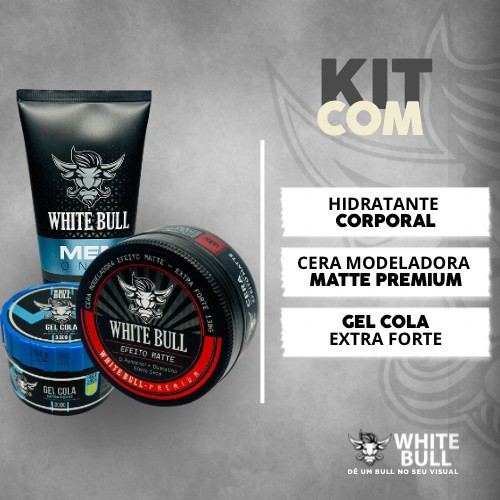 White Bull Barber Kit – Gel Cola Extra Forte, Cera Modeladora e Loção Corporal