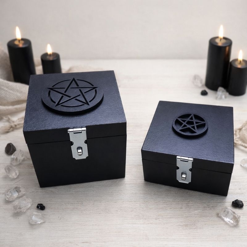 🔮 Caixa Wicca de Proteção com Pentagrama Sinta a energia. Proteja o que é sagrado. ✨ A Caixa Mística Wicca foi criada para guardar seus itens espirituais com segurança, intenção e poder. 🌙 Proteção e significado O pentagrama representa os 5 elementos (terra, água, fogo, ar e espírito), trazendo equilíbrio, proteção energética e conexão espiritual. ✨ Perfeita para guardar ✔ Cristais ✔ Ervas ✔ Amuletos ✔ Cartas de tarot ✔ Objetos do seu altar 🔥 Benefícios que fazem a diferença ✔ Protege suas energias contra negatividade ✔ Organiza seu espaço espiritual ✔ Fortalece seus rituais ✔ Deixa seu altar mais bonito e poderoso 📦 Detalhes do produto Material: Madeira resistente Estilo: Esotérico / Wicca Acabamento com símbolo místico Ideal para uso diário Medidas das caixas disponíveis: 10x10x07 Acompanha porta cadeado 12x12x10 Acompanha porta cadeado