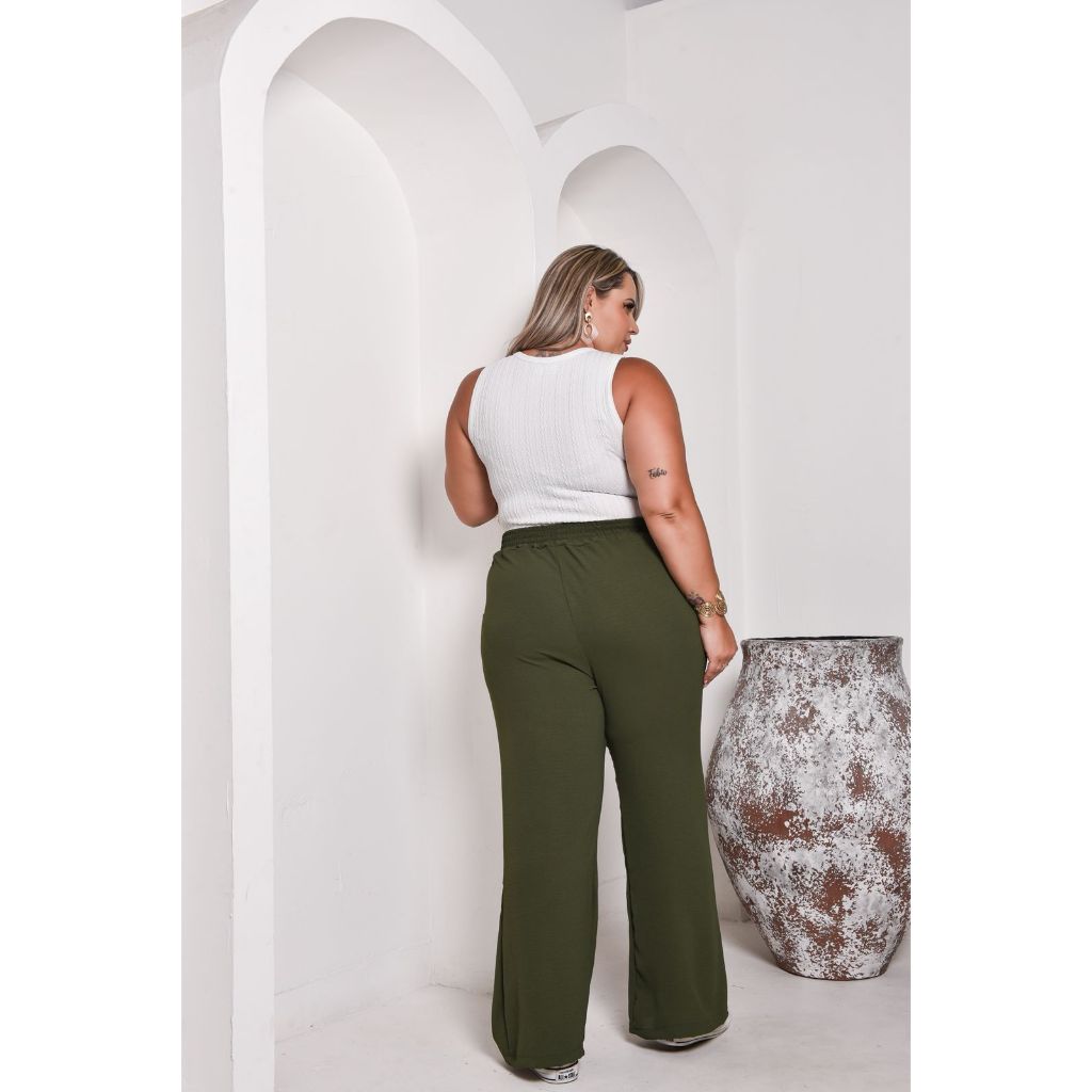 Descrição – Calça Pantalona Plus Size A calça pantalona plus size foi criada para quem busca conforto absoluto sem abrir mão do estilo. Com caimento impecável e modelagem que valoriza todos os tipos de corpo, ela traz um visual moderno, elegante e leve — perfeita para o dia a dia, trabalho ou momentos especiais. Seu tecido macio e com toque suave proporciona liberdade total de movimentos, enquanto o cós alto ajuda a modelar a cintura e garante segurança durante todo o uso. O design pantalona alonga a silhueta e cria um efeito visual superestiloso, deixando qualquer look mais sofisticado. Versátil e atemporal, combina com cropped, camiseta básica, body ou blusas mais arrumadas. Uma peça coringa que faz você se sentir linda, confiante e confortável em qualquer ocasião.