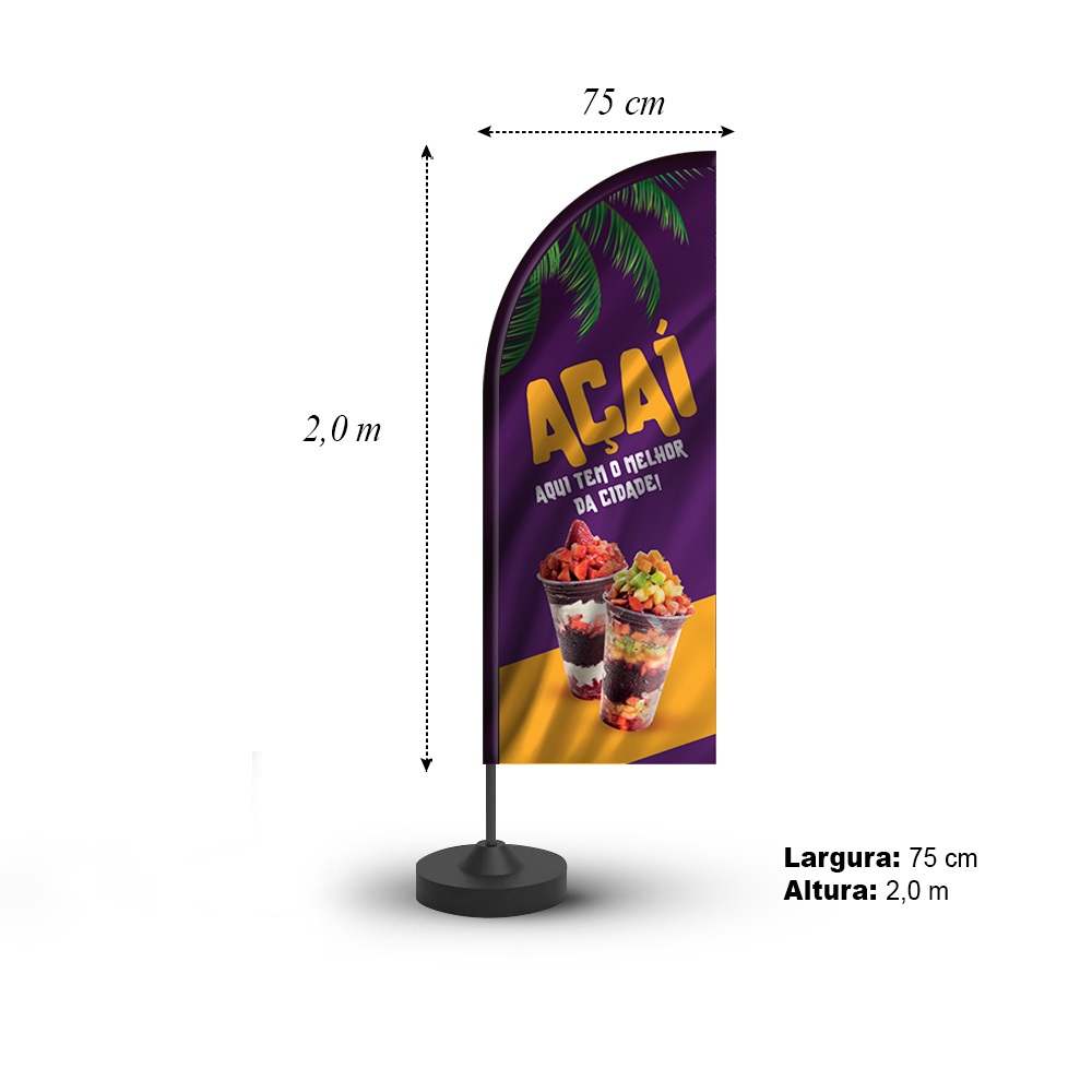 WIND BANNER DUPLA FACE PROMOÇÃO 2,00 X 0,70 *ATENÇÃO: ANÚNCIO APENAS DA BANDEIRA, NÃO ACOMPANHA A ESTRUTURA BASE E HASTE – IMAGEM ILUSTRATIVA* PRODUTO IDEAL PARA A EXPOSIÇÃO DE SUA EMPRESA, COM CORES VIVAS E CHAMATIVAS, SUPER ATRATIVAS PARA OS CLIENTES, COM DUPLA FACE E DE ALTA QUALIDADE. O Wind Banner possui um impacto visual atrativo, podendo ser utilizado em eventos, festas e na divulgação de seu negócio de maneira geral. CARACTERÍSTICAS/BENEFÍCIOS: - Wind Banner em tecido sublimado – não acompanha estrutura; - DUPLA FACE, atingindo uma maior exposição de sua marca; - Alta definição de imagem, com cores vivas e vibrantes; - Pode ser lavado (não desbota) e passar ferro; - Altíssima durabilidade (pode ser utilizado em outras ocasiões); - Não possui emenda; e - Não reflete na luz (melhor para fotos com ou sem flash). FICHA TÉCNICA: - Gramatura: 140g/m² de excelente qualidade; - Tecido 100% poliéster Full Print; TAMANHO: - O produto possui o tamanho de 2,00 X 0,70 (indicado haste 3,00 mts); PRODUÇÃO E ENVIO (ENVIAMOS PARA TODO O BRASIL): - Após a confirmação de pagamento, o produto é enviado para a produção e será despachado em um dia útil; - O envio é feito em embalagem individual e embalado com muito carinho e cuidado; - Todos os produtos possuem garantia contra defeito de fabricação; - O prazo para entrega varia de acordo com o CEP. INFORMAÇÕES IMPORTANTES: - O produto não acompanha estrutura; - Trabalhamos com produtos personalizados. Caso tenha alguma dúvida, pedimos que entre em contato conosco que nossa equipe irá te atender. BOAS COMPRAS!