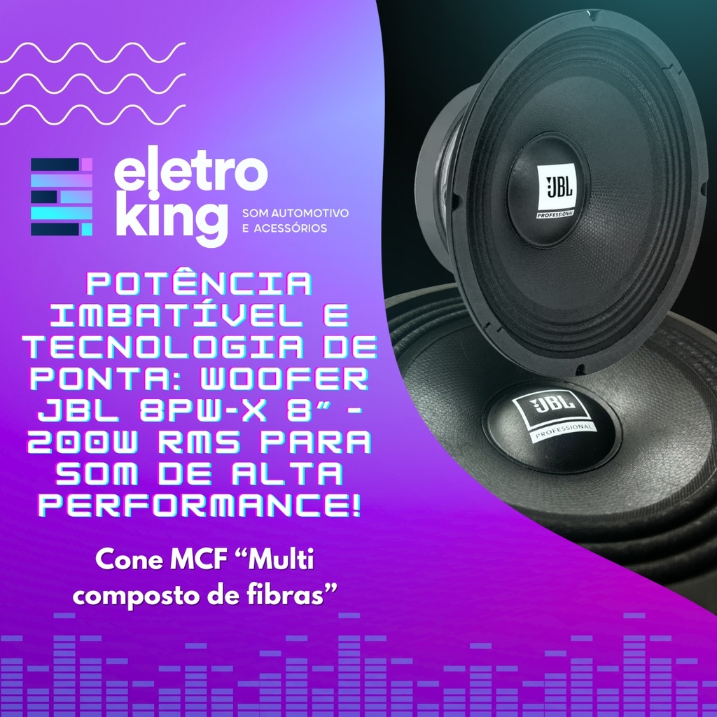 Seja bem-vindo a Eletroking, leia atentamente a descrição do produto abaixo antes da compra, qualquer dúvida, nos acione no campo de perguntas do anúncio. Woofer 8 JBL 8PW-X 200 Watts RMS - 4 Ohms O Woofer JBL 8PW-X de 8” destaca-se pela sua tecnologia avançada, oferecendo 200W RMS de potência com uma resposta de frequência precisa de 70 a 8500 Hz. Seu cone MCF patenteado pela Harman utiliza um composto multi fibras, tornando-o mais leve e resistente, além de reduzir custos. O conjunto magnético otimizado garante maior eficiência, enquanto a calota de celulose melhora a reprodução das frequências mais altas. Com alta sensibilidade, ele proporciona maior desempenho com menor consumo de energia, sendo a escolha ideal para sistemas de som exigentes em qualidade e durabilidade. Especificações Técnicas: • Conjunto magnético otimizado • Cone MCF (patente Harman): Multi composto de fibras • Cone mais resistente: Redução de peso • Redução de custo • Embalagem individual • Calota de celulose: Ganho nas frequências mais altas • Suspensões alteradas • Especificações Técnicas • Marca: JBL • Modelo: 8PWX 4R • Tipo: Woofer • Tamanho: 8 polegadas • Potência RMS: 200W • Impedância: 4 Ohms • Resposta de Frequência (Hz): 70 a 8500 • Sensibilidade: Alta sensibilidade para maior eficiência Conteúdo da Embalagem: • 01 JBL 8PW-X 200W 4ohms • Cartão de garantia • Manual Importante: • Garantia de 273 Dias. • Valor Unitário. • Todos os Nossos Produtos São Novos, Originais e Acompanham Nota Fiscal. • A Eletroking recomenda que a instalação seja feita por profissional especializado e não se responsabiliza pelo mau uso do produto.