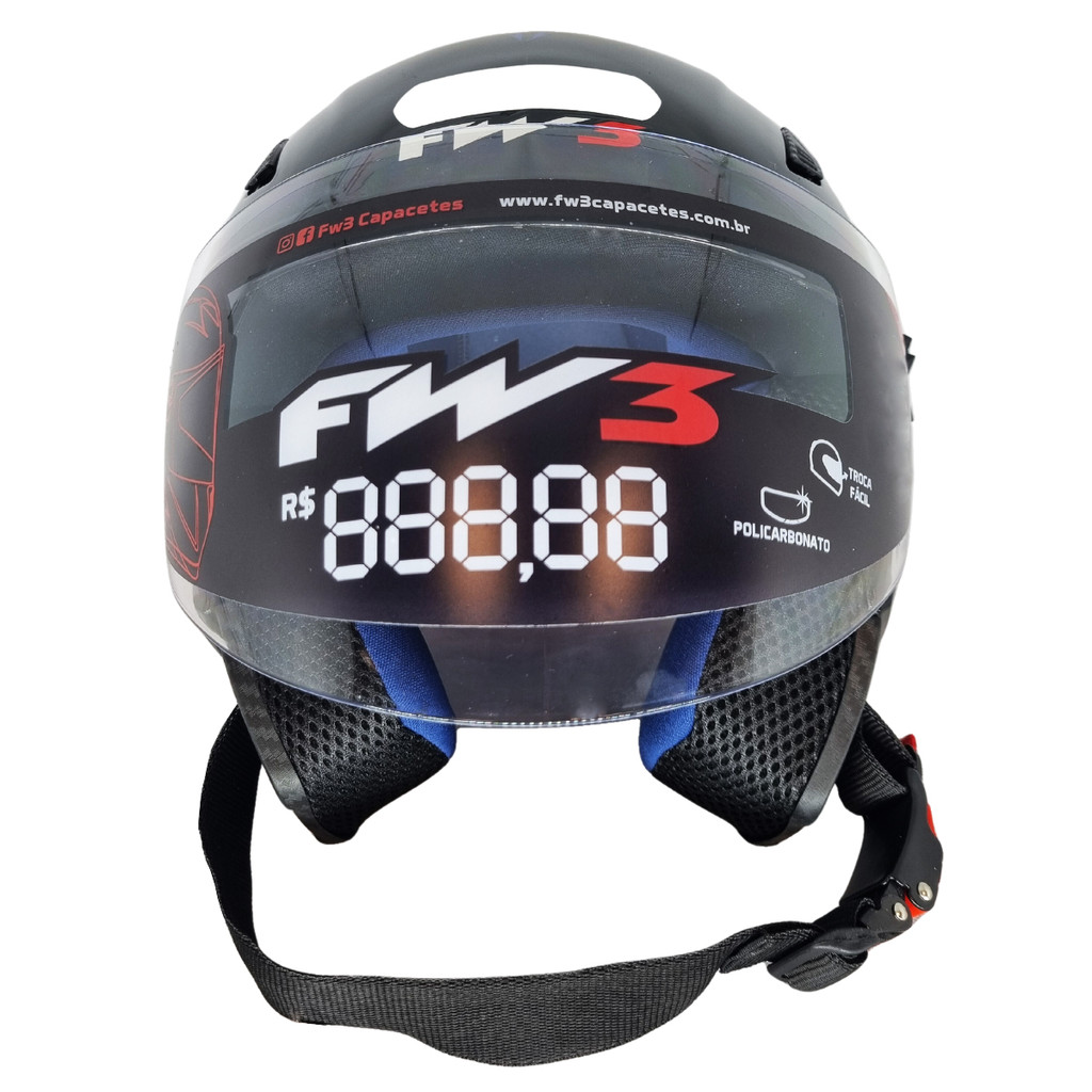 Bem-Vindo(a) a AT4U! Capacete FW3 Modelo X OPEN EAGLE Azul com Amarelo Com design esportivo e diferenciado, o capacete FW3 é perfeito para todos os motociclistas. Leve, estiloso e confortável, este moderno capacete vem com entrada e saída de ar, é fabricado em ABS super resistente e possui certificado de segurança. O melhor para você motociclista andar por aí com muita segurança, conforto e estilo! Capacetes da FW3 são projetados para lhe oferecer uma experiência inesquecível em cada um dos seus trajetos. Seus capacetes possuem uma estrutura compacta e se adapta perfeitamente ao condutor, preservando ao máximo sua segurança e garantindo trajetos confortáveis e divertidos. Maior conforto e segurança no seu andar! *ANTES DE EFETUAR SUA COMPRA, SELECIONE COR E TAMANHO DESEJADO.* Tamanhos Disponíveis: - 56 (Medidas da cabeça entre 55-56 cm); - 58 (Medidas da cabeça entre 57-58 cm); - 60 (Medidas da cabeça entre 59-60 cm). Características: - Cor: Azul com Amarelo; - Modelo: X OPEN EAGLE; - Casco em ABS; - Viseira transparente de policarbonato 2,0 mm, podendo ser removida; - Forração em camurça Jet Black 6 mm (Removível); - Entrada e saída de ar; - Reparo com trava de viseira; - Selo Inmetro; Conteúdo da Embalagem: - 01 Capacete FW3 Modelo X OPEN EAGLE Azul com Amarelo. IMPORTANTE: *Postagem em até 24h.* *Entrega Garantida.* *Produtos Originais e Certificados.* *COMPRE COM SEGURANÇA.* *Tire suas dúvidas via chat com nossos especialistas.*