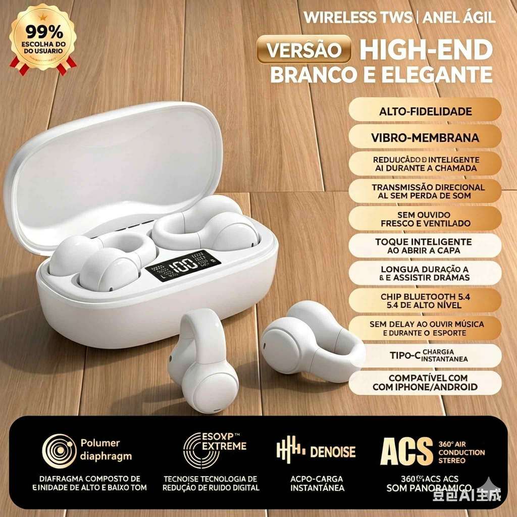 ✨ Fone de Ouvido Clip Auricular Sem Inserção no Ouvido – Conforto e Qualidade Total! ✨ 🎧 Som Surround HiFi 360°Driver de alta fidelidade + tecnologia ACS, graves potentes, agudos nítidos e som panorâmico imersivo para música, jogos e chamadas! 👂 Design Ergonômico Sem DorClip auricular inovador, sem inserção no ouvido, material macio como pele, 24h+ de uso sem desconforto, 99% de estabilidade, não cai durante exercícios intensos! 🚫 Cancelamento de Ruído ENC InteligenteTecnologia AI de redução de ruído, chamadas HD ultra nítidas mesmo em locais movimentados, transmissão sem atraso para jogos e séries! 🔋 Display LED de Bateria + Carregamento RápidoVerifique a carga em tempo real, bateria de longa duração, carregamento Type-C instantâneo, perfeito para uso diário! 💧 Resistente à Água e SuorProteção contra suor e chuva leve, ideal para corrida, academia, trabalho e viagens! 📱 Compatibilidade UniversalBluetooth 5.4 de alta velocidade, conexão estável, compatível com iPhone e Android, controle por toque inteligente!