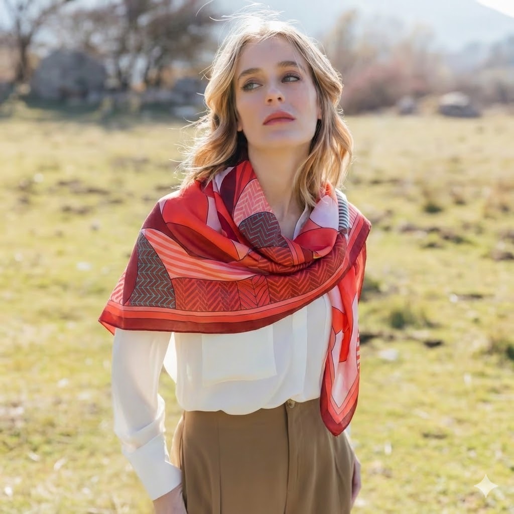 Xale cachecol lenço de seda lenço quadrado lenço linha geométrica impressão simulação seda High-End sentimento All-Match